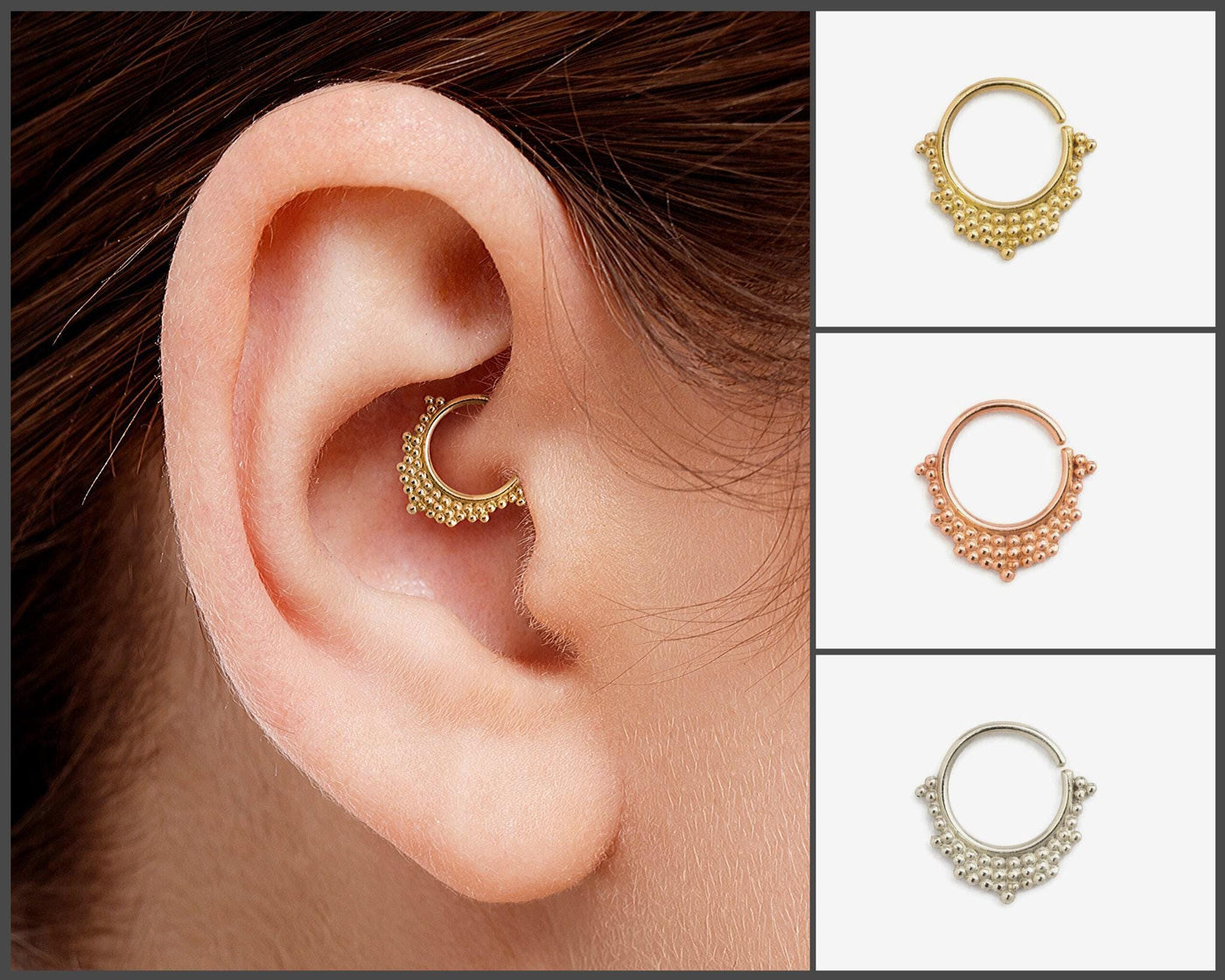 {"id":10788834803996,"title":"14k Gold Daith Earring – Delicate Tribal Hoop With 8mm Inner Diameter","handle":"14-k-gold-daith-earring-delicate-tribal-hoop-with-8-mm-inner-diameter-23734347","description":"\u003cp\u003eThis 14k gold daith earring is a delicate gold hoop designed to enhance your daith piercing with elegant Indian tribal jewelry style. Crafted from solid 14 karat gold, this tribal hoop earring features an 8mm inner diameter ring and a slender 16 gauge gold wire for a comfortable daith ring experience. The unique piercing gift combines traditional Indian style earrings with modern craftsmanship to deliver a dainty gold hoop style that fits perfectly and feels light on the skin.\u003c\/p\u003e\u003cbr\u003e\u003cp\u003eThe 14k gold daith earring measures precisely with an 8mm inner diameter and a 16 gauge gold wire thickness, ensuring it suits most daith piercing hoop needs. Its width of 14mm creates a balanced silhouette that complements your ear without overwhelming it. The nose bottom to ring bottom length of 5mm offers a subtle presence, making this handmade tribal earring perfect for everyday wear or special occasions. Each piece is handmade to order, guaranteeing attention to detail and quality in every curve.\u003c\/p\u003e\u003cbr\u003e\u003cp\u003e- Wire size: 16 gauge gold wire for comfortable wear throughout the day\u003c\/p\u003e\u003cp\u003e- Inner diameter: 8mm inner diameter ring (5\/16 inch) for precise fit\u003c\/p\u003e\u003cp\u003e- Width: 14mm (9\/16 inch) providing a balanced, delicate gold hoop shape\u003c\/p\u003e\u003cp\u003e- Length from nose bottom to ring bottom: 5mm (3\/16 inch) designed for subtle elegance\u003c\/p\u003e\u003cp\u003e- Material: Solid 14 karat gold ensuring durability and warm skin tone compatibility\u003c\/p\u003e\u003cp\u003e- Handmade tribal earring crafted individually for uniqueness and quality assurance\u003c\/p\u003e\u003cp\u003e- Packaged in elegant gift boxes, ideal as a unique piercing gift or personal keepsake\u003c\/p\u003e\u003cp\u003e- Customer support available seven days a week to assist with any questions or concerns\u003c\/p\u003e\u003cp\u003e- Shop policies include a 100% satisfaction guarantee for peace of mind\u003c\/p\u003e\u003cbr\u003e\u003cp\u003eStudio Meme’s collection honors tradition and quiet strength by blending Indian tribal jewelry aesthetics with modern design. This daith piercing hoop offers both style and comfort, making it an intimate companion for those who appreciate handcrafted pieces that tell a story. Our solid 14 karat gold ensures lasting shine and hypoallergenic wear, ideal for sensitive skin.\u003c\/p\u003e\u003cbr\u003e\u003cp\u003eThe delicate gold hoop is more than just an accessory; it’s a symbol of heritage and personal expression. Whether you are gifting this handmade tribal earring or adding to your own collection, its dainty gold hoop style stands out as a timeless piece. Important note for US customers: All orders ship through our US distributor with no additional duties or taxes upon delivery.\u003c\/p\u003e\u003cbr\u003e\u003cp\u003eExplore more at Studio Meme’s Etsy shop where each piece is born from hands that honor tradition and quiet strength. Let this unique piercing gift be a quiet sign, marking your own story with elegance and cultural depth.\u003c\/p\u003e","published_at":"2026-03-06T23:33:29+02:00","created_at":"2026-03-06T23:32:50+02:00","vendor":"Studio Meme","type":"","tags":["daith-earring","delicate","ear piercing jewelry","gold","handmade","minimalist","tiny","tribal nose hoop","tribal style jewelry"],"price":19700,"price_min":19700,"price_max":22800,"available":true,"price_varies":true,"compare_at_price":0,"compare_at_price_min":0,"compare_at_price_max":0,"compare_at_price_varies":false,"variants":[{"id":53967201337628,"title":"Thin - 18ga (1mm) \/ Solid Yellow Gold","option1":"Thin - 18ga (1mm)","option2":"Solid Yellow Gold","option3":null,"sku":"81-18-YG","requires_shipping":true,"taxable":true,"featured_image":null,"available":true,"name":"14k Gold Daith Earring – Delicate Tribal Hoop With 8mm Inner Diameter - Thin - 18ga (1mm) \/ Solid Yellow Gold","public_title":"Thin - 18ga (1mm) \/ Solid Yellow Gold","options":["Thin - 18ga (1mm)","Solid Yellow Gold"],"price":19700,"weight":0,"compare_at_price":0,"inventory_management":"shopify","barcode":null,"requires_selling_plan":false,"selling_plan_allocations":[]},{"id":53967201370396,"title":"Thin - 18ga (1mm) \/ Solid Rose Gold","option1":"Thin - 18ga (1mm)","option2":"Solid Rose Gold","option3":null,"sku":"81-18-RG","requires_shipping":true,"taxable":true,"featured_image":null,"available":true,"name":"14k Gold Daith Earring – Delicate Tribal Hoop With 8mm Inner Diameter - Thin - 18ga (1mm) \/ Solid Rose Gold","public_title":"Thin - 18ga (1mm) \/ Solid Rose Gold","options":["Thin - 18ga (1mm)","Solid Rose Gold"],"price":19700,"weight":0,"compare_at_price":0,"inventory_management":"shopify","barcode":null,"requires_selling_plan":false,"selling_plan_allocations":[]},{"id":53967201403164,"title":"Thin - 18ga (1mm) \/ Solid Whire Gold","option1":"Thin - 18ga (1mm)","option2":"Solid Whire Gold","option3":null,"sku":"81-18-WG","requires_shipping":true,"taxable":true,"featured_image":null,"available":true,"name":"14k Gold Daith Earring – Delicate Tribal Hoop With 8mm Inner Diameter - Thin - 18ga (1mm) \/ Solid Whire Gold","public_title":"Thin - 18ga (1mm) \/ Solid Whire Gold","options":["Thin - 18ga (1mm)","Solid Whire Gold"],"price":21600,"weight":0,"compare_at_price":0,"inventory_management":"shopify","barcode":null,"requires_selling_plan":false,"selling_plan_allocations":[]},{"id":53967201435932,"title":"Standard-16ga(1.2mm) \/ Solid Yellow Gold","option1":"Standard-16ga(1.2mm)","option2":"Solid Yellow Gold","option3":null,"sku":"81-16-YG","requires_shipping":true,"taxable":true,"featured_image":null,"available":true,"name":"14k Gold Daith Earring – Delicate Tribal Hoop With 8mm Inner Diameter - Sta