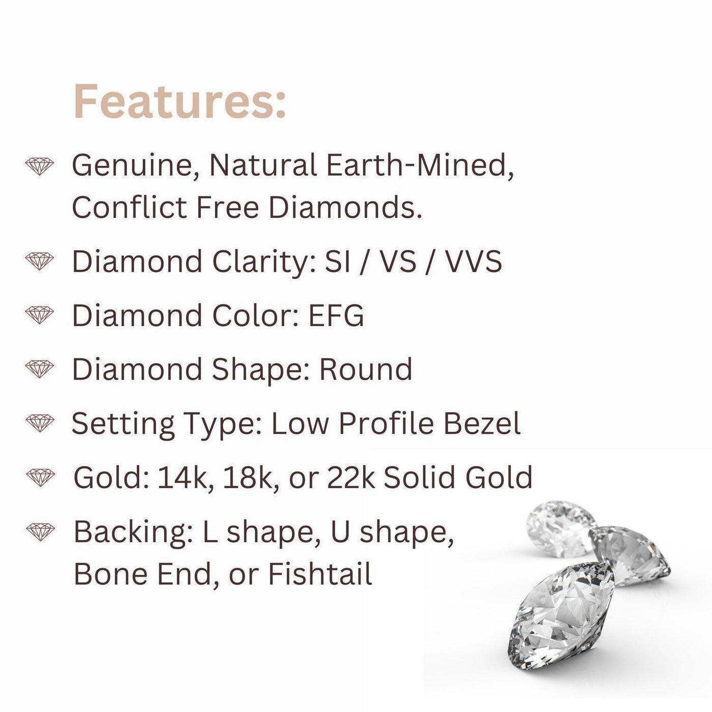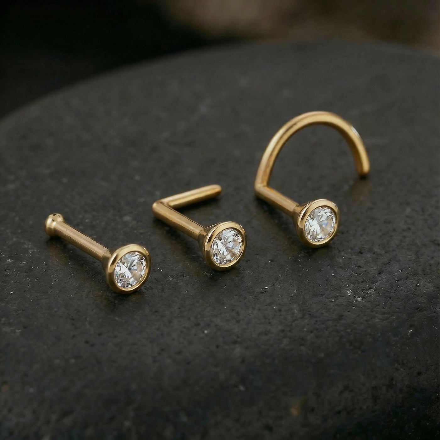 {"id":10788839686428,"title":"Diamond Nose Stud – 14k 18k 22k Gold Small Natural Diamond Stud, Bezel Setting","handle":"diamond-nose-stud-14-k-18-k-22-k-gold-small-natural-diamond-stud-bezel-setting-23734188","description":"\u003cp\u003eThe diamond nose stud is a stunning piece of fine jewelry designed to enhance your natural beauty with elegance and subtle sparkle. Crafted with genuine earth-mined natural diamonds set in 14k, 18k, or 22k solid gold, this diamond nose stud offers a hypoallergenic option for those seeking a comfortable and stylish nose ring alternative. Perfect for everyday wear or special occasions, this small diamond nose stud adds a refined touch to any look while ensuring durability and lasting shine.\u003c\/p\u003e\u003cbr\u003e\u003cp\u003eEach nose pin features a bezel setting nose stud design that securely holds the diamond in place, preventing damage and enhancing brilliance. Available in multiple diamond sizes ranging from 1.5mm to 3.5mm and clarity grades SI\/VS with EFG color, this natural diamond stud delivers exceptional sparkle and quality. Choose from 22, 20, 18, or 16 gauge sizes (0.6mm to 1.2mm) and back shapes including U shape, L shape, bone end, or fishtail for a perfect fit tailored to your comfort and style.\u003c\/p\u003e\u003cbr\u003e\u003cp\u003eOur gold nose stud collection is crafted by Studio Meme, a family-run business since 2013 known for its commitment to artistry and craftsmanship. Each piece undergoes strict quality checks to ensure you receive fine jewelry nose pin accessories that exceed expectations. The jewelry comes beautifully packaged in a gift-ready box, making it an ideal present symbolizing elegance and luxury.\u003c\/p\u003e\u003cbr\u003e\u003cp\u003eKey features:\u003c\/p\u003e\u003cp\u003e* Genuine natural diamond stud with SI\/VS clarity and EFG color\u003c\/p\u003e\u003cp\u003e* Available in 14k gold nose stud, 18k gold nose stud, or 22k gold nose stud options\u003c\/p\u003e\u003cp\u003e* Multiple diamond sizes: 1.5mm, 2mm, 2.5mm, 3mm, and 3.5mm\u003c\/p\u003e\u003cp\u003e* Hypoallergenic solid gold construction suitable for sensitive skin\u003c\/p\u003e\u003cp\u003e* Bezel setting nose stud design for secure and stylish wear\u003c\/p\u003e\u003cp\u003e* Gauge sizes: 22g (0.6mm), 20g (0.8mm), 18g (1mm), and 16g (1.2mm)\u003c\/p\u003e\u003cp\u003e* Variety of back styles: U shape, L shape, bone end, fishtail\u003c\/p\u003e\u003cp\u003e* Single item listing; order two for a pair\u003c\/p\u003e\u003cp\u003e* Gift-ready packaging included\u003c\/p\u003e\u003cp\u003e* Option to upgrade shipping to express or insured mail at checkout\u003c\/p\u003e\u003cbr\u003e\u003cp\u003eAdditional benefits:\u003c\/p\u003e\u003cp\u003e* Durable solid gold material → long-lasting shine and resistance to tarnish\u003c\/p\u003e\u003cp\u003e* Small diamond nose stud size → subtle yet eye-catching elegance\u003c\/p\u003e\u003cp\u003e* Versatile design → perfect as an elegant nose accessory for daily wear or special events\u003c\/p\u003e\u003cp\u003e* Hypoallergenic properties → safe for sensitive skin without irritation\u003c\/p\u003e\u003cp\u003e* Alternative to traditional nose rings → comfortable fit with stylish appeal\u003c\/p\u003e\u003cbr\u003e\u003cp\u003eStudio Meme’s dedication to quality craftsmanship ensures each diamond nose piercing jewelry piece is meticulously created with attention to detail by Meirav and Tom Niv, whose combined talents bring unique artistry into every design. Since its founding in 2013, the brand has built a reputation for delivering exquisite pieces that blend timeless beauty with modern style.\u003c\/p\u003e\u003cbr\u003e\u003cp\u003ePlease note that these diamond nose studs do not come with a gemological certificate of authenticity by default to keep prices accessible; however, certificates can be issued upon request for an additional fee of $50–$100.\u003c\/p\u003e\u003cbr\u003e\u003cp\u003eElevate your jewelry collection today with this elegant diamond nose stud that combines superior materials, precise craftsmanship, and versatile style in one beautiful accessory.\u003c\/p\u003e","published_at":"2026-03-06T23:39:32+02:00","created_at":"2026-03-06T23:39:07+02:00","vendor":"Studio Meme","type":"","tags":["bezel setting","diamond","gold","handmade","minimal","nose piercing jewelry","nose studs","nose-stud","thin","tiny","tiny nose studs"],"price":13500,"price_min":13500,"price_max":116200,"available":true,"price_varies":true,"compare_at_price":0,"compare_at_price_min":0,"compare_at_price_max":0,"compare_at_price_varies":false,"variants":[{"id":53967349874972,"title":"14k Yellow + 1.5mm \/ Thin 22ga 0.6mm \/ Bone","option1":"14k Yellow + 1.5mm","option2":"Thin 22ga 0.6mm","option3":"Bone","sku":"187-bezel","requires_shipping":false,"taxable":true,"featured_image":null,"available":true,"name":"Diamond Nose Stud – 14k 18k 22k Gold Small Natural Diamond Stud, Bezel Setting - 14k Yellow + 1.5mm \/ Thin 22ga 0.6mm \/ Bone","public_title":"14k Yellow + 1.5mm \/ Thin 22ga 0.6mm \/ Bone","options":["14k Yellow + 1.5mm","Thin 22ga 0.6mm","Bone"],"price":13500,"weight":0,"compare_at_price":0,"inventory_management":"shopify","barcode":null,"requires_selling_plan":false,"selling_plan_allocations":[]},{"id":53967995404572,"title":"14k Yellow + 1.5mm \/ Thin 22ga 0.6mm \/ L shape (right nostril)","option1":"14k Yellow + 1.5mm","option2":"Thin 22ga 0.6mm","option3":"L shape (right nostril)","sku":"187-bezel","requires_shipping":false,"taxable":true,"featured_image":null,"available":true,"name":"Diamond Nose Stud – 14k 18k 22k Gold Small Natural Diamond Stud, Bezel Setting - 14k Yellow + 1.5mm \/ Thin 22ga 0.6mm \/ L shape (right nostril)","public_title":"14k Yellow + 1.5mm \/ Thin 22ga 0.6mm \/ L shape (right nostril)","options":["14k Yellow + 1.5mm","Thin 22ga 0.6mm","L shape (right nostril)"],"price":13500,"weight":0,"compare_at_price":0,"inventory_management":null,"barcode":null,"requires_selling_plan":f