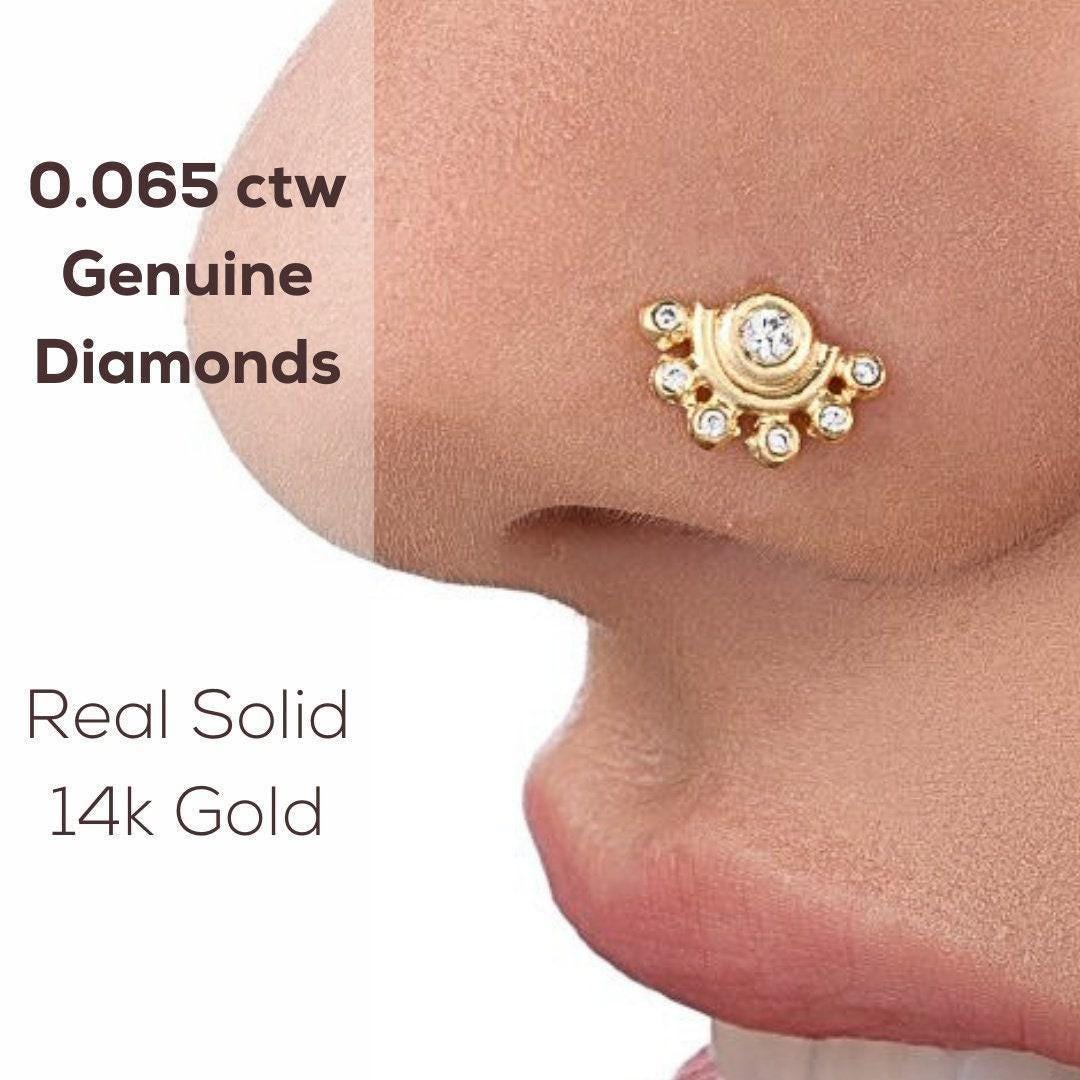 {"id":10788833820956,"title":"Diamond Nose Stud - 14k Gold Nose Ring With Seven Diamond Accent | Rose \u0026 White Gold","handle":"diamond-nose-stud-14-k-gold-nose-ring-with-seven-diamond-accent-rose-white-gold-23734327","description":"\u003cp\u003eThis diamond nose stud features seven diamond accents set in solid 14k gold, designed to offer a delicate yet striking addition to your jewelry collection. Crafted as a 14k gold nose ring available in rose gold or white gold nose jewelry, this piece delivers subtle sparkle and cultural significance for anyone seeking a refined bridal nose ring or Indian wedding nose stud. The diamond nose stud provides a total of 0.14 carats of genuine earth-mined diamonds that shimmer softly, enhancing your look with understated elegance.\u003c\/p\u003e\u003cbr\u003e\u003cp\u003e- Set with seven diamond accents totaling 0.14ct for gentle sparkle\u003c\/p\u003e\u003cp\u003e- Made from solid 14k rose gold or white gold for lasting shine\u003c\/p\u003e\u003cp\u003e- Available in multiple wire thicknesses: 22ga, 20ga, 18ga, and 16ga for custom gauge nose ring fit\u003c\/p\u003e\u003cp\u003e- Nickel free nose ring ensures irritation-free wear\u003c\/p\u003e\u003cp\u003e- Tarnish resistant jewelry maintains its beauty over time\u003c\/p\u003e\u003cp\u003e- Handmade gold stud crafted carefully in Israel\u003c\/p\u003e\u003cp\u003e- Includes free jewelry gift box and tracking number with every order\u003c\/p\u003e\u003cp\u003e- Expedited and express shipping upgrades available at checkout\u003c\/p\u003e\u003cp\u003e- Customer service available seven days a week to assist you\u003c\/p\u003e\u003cbr\u003e\u003cp\u003eThis delicate diamond stud is perfect for cultural nose piercing or as a bridal nose ring that carries tradition with grace. Each piece is nickel free and tarnish resistant, providing comfort and durability throughout daily wear. The customizable gauge sizes and choice between rose gold nose stud or white gold nose jewelry allow you to select the ideal fit and style that matches your personal rhythm.\u003c\/p\u003e\u003cbr\u003e\u003cp\u003eNatural gemstones may vary slightly in color and reflection, highlighting their unique origin and individuality. Handmade since 2013 by Studio Meme, this piece honors the quiet strength of handmade adornment, blending thoughtful craftsmanship with authentic materials. Shipped from US logistics for timely delivery, it’s a trusted choice for those who appreciate quality and cultural heritage.\u003c\/p\u003e\u003cbr\u003e\u003cp\u003eExplore more at www.studiomeme.etsy.com and www.studiomemesilver.etsy.com to find jewelry shaped by skilled hands and natural beauty. If this diamond nose stud speaks to you, let it be yours.\u003c\/p\u003e","published_at":"2026-03-06T23:33:12+02:00","created_at":"2026-03-06T23:32:40+02:00","vendor":"Studio Meme","type":"","tags":["14k gold","diamond","gold","handmade","nose-ring","nose-stud","statement"],"price":40600,"price_min":40600,"price_max":40600,"available":true,"price_varies":false,"compare_at_price":0,"compare_at_price_min":0,"compare_at_price_max":0,"compare_at_price_varies":false,"variants":[{"id":53967178760476,"title":"Thin 22g (0.6mm) \/ Right Nostril \/ Bone","option1":"Thin 22g (0.6mm)","option2":"Right Nostril","option3":"Bone","sku":"179-7D","requires_shipping":true,"taxable":true,"featured_image":null,"available":true,"name":"Diamond Nose Stud - 14k Gold Nose Ring With Seven Diamond Accent | Rose \u0026 White Gold - Thin 22g (0.6mm) \/ Right Nostril \/ Bone","public_title":"Thin 22g (0.6mm) \/ Right Nostril \/ Bone","options":["Thin 22g (0.6mm)","Right Nostril","Bone"],"price":40600,"weight":0,"compare_at_price":0,"inventory_management":"shopify","barcode":null,"requires_selling_plan":false,"selling_plan_allocations":[]},{"id":53975635231004,"title":"Thin 22g (0.6mm) \/ Right Nostril \/ L shape (left nostril)","option1":"Thin 22g (0.6mm)","option2":"Right Nostril","option3":"L shape (left nostril)","sku":"179-7D","requires_shipping":true,"taxable":true,"featured_image":null,"available":true,"name":"Diamond Nose Stud - 14k Gold Nose Ring With Seven Diamond Accent | Rose \u0026 White Gold - Thin 22g (0.6mm) \/ Right Nostril \/ L shape (left nostril)","public_title":"Thin 22g (0.6mm) \/ Right Nostril \/ L shape (left nostril)","options":["Thin 22g (0.6mm)","Right Nostril","L shape (left nostril)"],"price":40600,"weight":0,"compare_at_price":0,"inventory_management":"shopify","barcode":null,"requires_selling_plan":false,"selling_plan_allocations":[]},{"id":53975635263772,"title":"Thin 22g (0.6mm) \/ Right Nostril \/ L shape (right nostril)","option1":"Thin 22g (0.6mm)","option2":"Right Nostril","option3":"L shape (right nostril)","sku":"179-7D","requires_shipping":true,"taxable":true,"featured_image":null,"available":true,"name":"Diamond Nose Stud - 14k Gold Nose Ring With Seven Diamond Accent | Rose \u0026 White Gold - Thin 22g (0.6mm) \/ Right Nostril \/ L shape (right nostril)","public_title":"Thin 22g (0.6mm) \/ Right Nostril \/ L shape (right nostril)","options":["Thin 22g (0.6mm)","Right Nostril","L shape (right nostril)"],"price":40600,"weight":0,"compare_at_price":0,"inventory_management":"shopify","barcode":null,"requires_selling_plan":false,"selling_plan_allocations":[]},{"id":53975635296540,"title":"Thin 22g (0.6mm) \/ Right Nostril \/ U shape (left nostril)","option1":"Thin 22g (0.6mm)","option2":"Right Nostril","option3":"U shape (left nostril)","sku":"179-7D","requires_shipping":true,"taxable":true,"featured_image":null,"available":true,"name":"Diamond Nose Stud - 14k Gold Nose Ring With Seven Diamond Accent | Rose \u0026 White Gold - Thin 22g (0.6mm) \/ Right Nostril \/ U shape (left nostril)","public_title":"Thin 22g (0.6mm) \/ Right Nostril \/ U shape (left nostril)","options":["Thin 22g (0.6mm)","Right Nostril","U shape (left nostril)"],"price":40600,"weight":0,"compare_at_price":0,"inventory_management":"shopify","barcode":null,"requires_selling_plan":fals