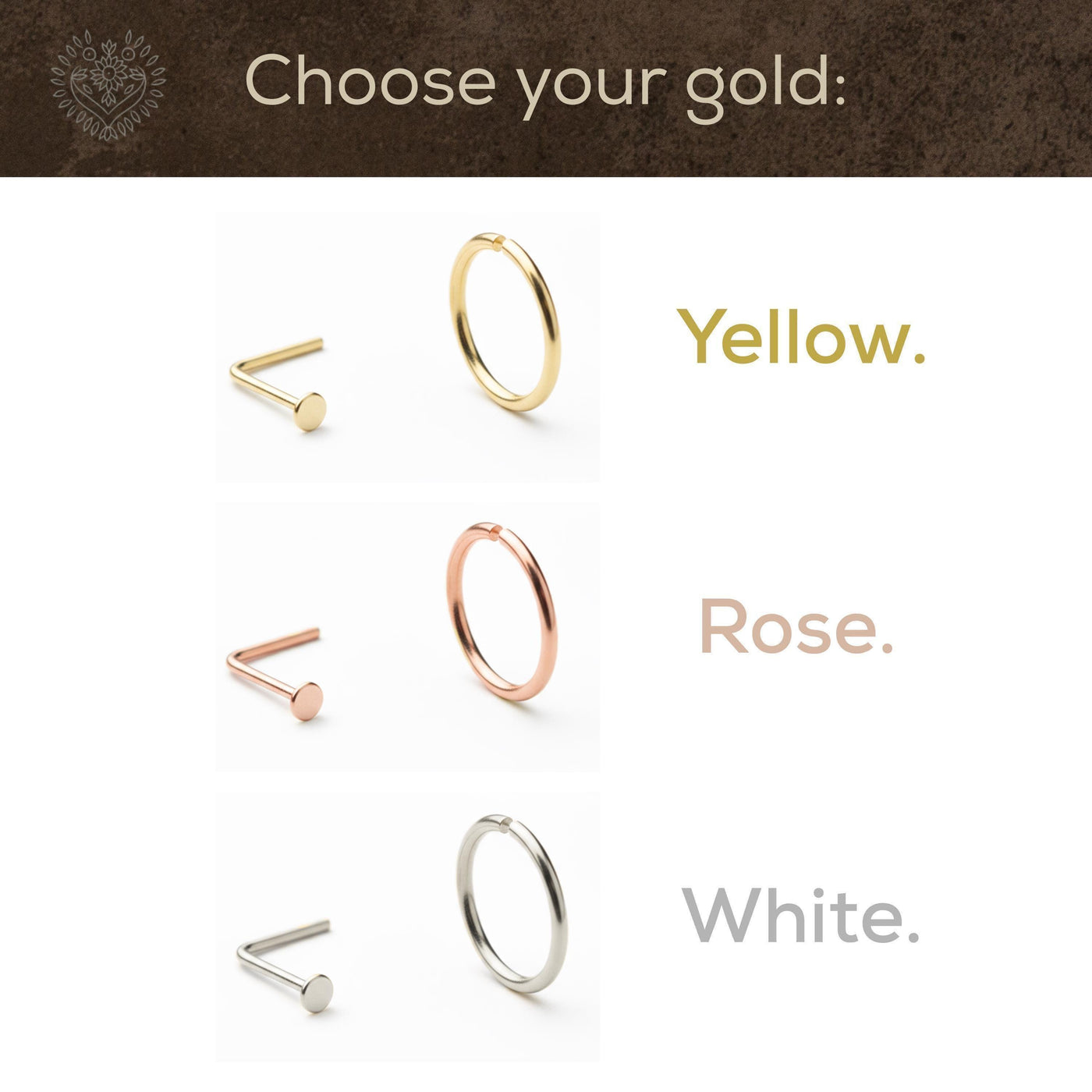 {"id":10788839227676,"title":"14k Gold Nose Ring - Minimal Nose Hoop \u0026 Flat Disk Stud Set | Nickel Free Piercing","handle":"14-k-gold-nose-ring-minimal-nose-hoop-flat-disk-stud-set-nickel-free-piercing-23734194","description":"\u003cp\u003eThis 14k gold nose ring and stud set offers a minimal nose hoop paired with a flat disk stud, designed as a nickel free piercing for everyday nose jewelry that combines comfort and style. Crafted from solid 14k gold, this dainty nose ring set delivers a hypoallergenic nose ring option available in yellow gold nose ring, rose gold nose jewelry, and white gold nose hoop finishes. The smooth hoops and flat disk studs move lightly with your skin, providing a subtle yet elegant accent that fits seamlessly into your daily routine.\u003c\/p\u003e\u003cbr\u003e\u003cp\u003eThe set includes hoop diameters ranging from XS to XL (6mm to 10mm) and flat disk stud sizes from S to L (1.5mm to 3.5mm). You can choose gauges of 22G, 20G (default), 18G, or 16G to ensure the perfect fit. Each handmade gold piercing is nickel free, reducing irritation and promoting long-term comfort for sensitive skin.\u003c\/p\u003e\u003cbr\u003e\u003cp\u003e- Crafted from solid 14k gold for durability and lasting shine\u003c\/p\u003e\u003cp\u003e- Hypoallergenic nose ring design suitable for sensitive skin\u003c\/p\u003e\u003cp\u003e- Minimal nose hoop available in multiple sizes for personalized style\u003c\/p\u003e\u003cp\u003e- Flat disk stud complements the hoop with a smooth, comfortable fit\u003c\/p\u003e\u003cp\u003e- Nickel free piercing set reduces allergic reactions\u003c\/p\u003e\u003cp\u003e- Available in yellow gold nose ring, rose gold nose jewelry, and white gold nose hoop options\u003c\/p\u003e\u003cp\u003e- Gauges offered: 22G, 20G (default), 18G, and 16G\u003c\/p\u003e\u003cp\u003e- Handmade gold piercing ensures unique natural variations\u003c\/p\u003e\u003cbr\u003e\u003cp\u003eCustomize your custom gold nose ring by selecting your preferred hoop diameter and disk size. Special requests for back shapes or other modifications are welcome to tailor your look. Each purchase includes a free jewelry gift box and tracking number, with expedited shipping available for faster delivery.\u003c\/p\u003e\u003cbr\u003e\u003cp\u003eStudio Meme has specialized in handmade gold piercing since 2013, focusing on quality craftsmanship that honors subtle beauty and personal expression. This handmade set has been tested for comfort and durability to meet the needs of everyday wearers looking for reliable nose piercing accessories. Explore more at www.studiomeme.etsy.com and www.vanaluma.etsy.com to find pieces that speak softly of presence and place.\u003c\/p\u003e\u003cbr\u003e\u003cp\u003eWhether you want a delicate accent or a standout piece, this minimal everyday style set offers versatile options that enhance your look while prioritizing comfort and safety.\u003c\/p\u003e","published_at":"2026-03-06T23:39:31+02:00","created_at":"2026-03-06T23:39:02+02:00","vendor":"Studio Meme","type":"","tags":["14k gold","flat disk stud","gold","handmade","nickel free","nose jewelry","nose piercing jewelry","nose-hoop","nose-ring","tiny","tiny nose ring"],"price":15200,"price_min":15200,"price_max":25800,"available":true,"price_varies":true,"compare_at_price":0,"compare_at_price_min":0,"compare_at_price_max":0,"compare_at_price_varies":false,"variants":[{"id":53967327265052,"title":"XS – 6mm Hoop · Tiny 1.5mm Disk \/ 14k Solid Yellow Gold","option1":"XS – 6mm Hoop · Tiny 1.5mm Disk","option2":"14k Solid Yellow Gold","option3":null,"sku":"S41+121-20g-YG","requires_shipping":true,"taxable":true,"featured_image":null,"available":true,"name":"14k Gold Nose Ring - Minimal Nose Hoop \u0026 Flat Disk Stud Set | Nickel Free Piercing - XS – 6mm Hoop · Tiny 1.5mm Disk \/ 14k Solid Yellow Gold","public_title":"XS – 6mm Hoop · Tiny 1.5mm Disk \/ 14k Solid Yellow Gold","options":["XS – 6mm Hoop · Tiny 1.5mm Disk","14k Solid Yellow Gold"],"price":15200,"weight":0,"compare_at_price":0,"inventory_management":"shopify","barcode":null,"requires_selling_plan":false,"selling_plan_allocations":[]},{"id":53967327297820,"title":"XS – 6mm Hoop · Tiny 1.5mm Disk \/ 14k Solid Rose Gold","option1":"XS – 6mm Hoop · Tiny 1.5mm Disk","option2":"14k Solid Rose Gold","option3":null,"sku":"S41+121-20g-YG","requires_shipping":true,"taxable":true,"featured_image":null,"available":true,"name":"14k Gold Nose Ring - Minimal Nose Hoop \u0026 Flat Disk Stud Set | Nickel Free Piercing - XS – 6mm Hoop · Tiny 1.5mm Disk \/ 14k Solid Rose Gold","public_title":"XS – 6mm Hoop · Tiny 1.5mm Disk \/ 14k Solid Rose Gold","options":["XS – 6mm Hoop · Tiny 1.5mm Disk","14k Solid Rose Gold"],"price":15200,"weight":0,"compare_at_price":0,"inventory_management":"shopify","barcode":null,"requires_selling_plan":false,"selling_plan_allocations":[]},{"id":53967327330588,"title":"XS – 6mm Hoop · Tiny 1.5mm Disk \/ 14k Solid White Gold","option1":"XS – 6mm Hoop · Tiny 1.5mm Disk","option2":"14k Solid White Gold","option3":null,"sku":"S41+121-20g-YG","requires_shipping":true,"taxable":true,"featured_image":null,"available":true,"name":"14k Gold Nose Ring - Minimal Nose Hoop \u0026 Flat Disk Stud Set | Nickel Free Piercing - XS – 6mm Hoop · Tiny 1.5mm Disk \/ 14k Solid White Gold","public_title":"XS – 6mm Hoop · Tiny 1.5mm Disk \/ 14k Solid White Gold","options":["XS – 6mm Hoop · Tiny 1.5mm Disk","14k Solid White Gold"],"price":15800,"weight":0,"compare_at_price":0,"inventory_management":"shopify","barcode":null,"requires_selling_plan":false,"selling_plan_allocations":[]},{"id":53967327363356,"title":"XS – 6mm Hoop · Tiny 1.5mm Disk \/ 18k Solid Yellow Gold","option1":"XS – 6mm Hoop · Tiny 1.5mm Disk","option2":"18k Solid Yellow Gold","option3":null,"sku":"S41+121-20g-YG","requires_shipping":true,"taxable":true,"featured_image":null,"available":true,"name":"14k Gold Nose Ring - Minimal Nose Hoop \u0026 Flat