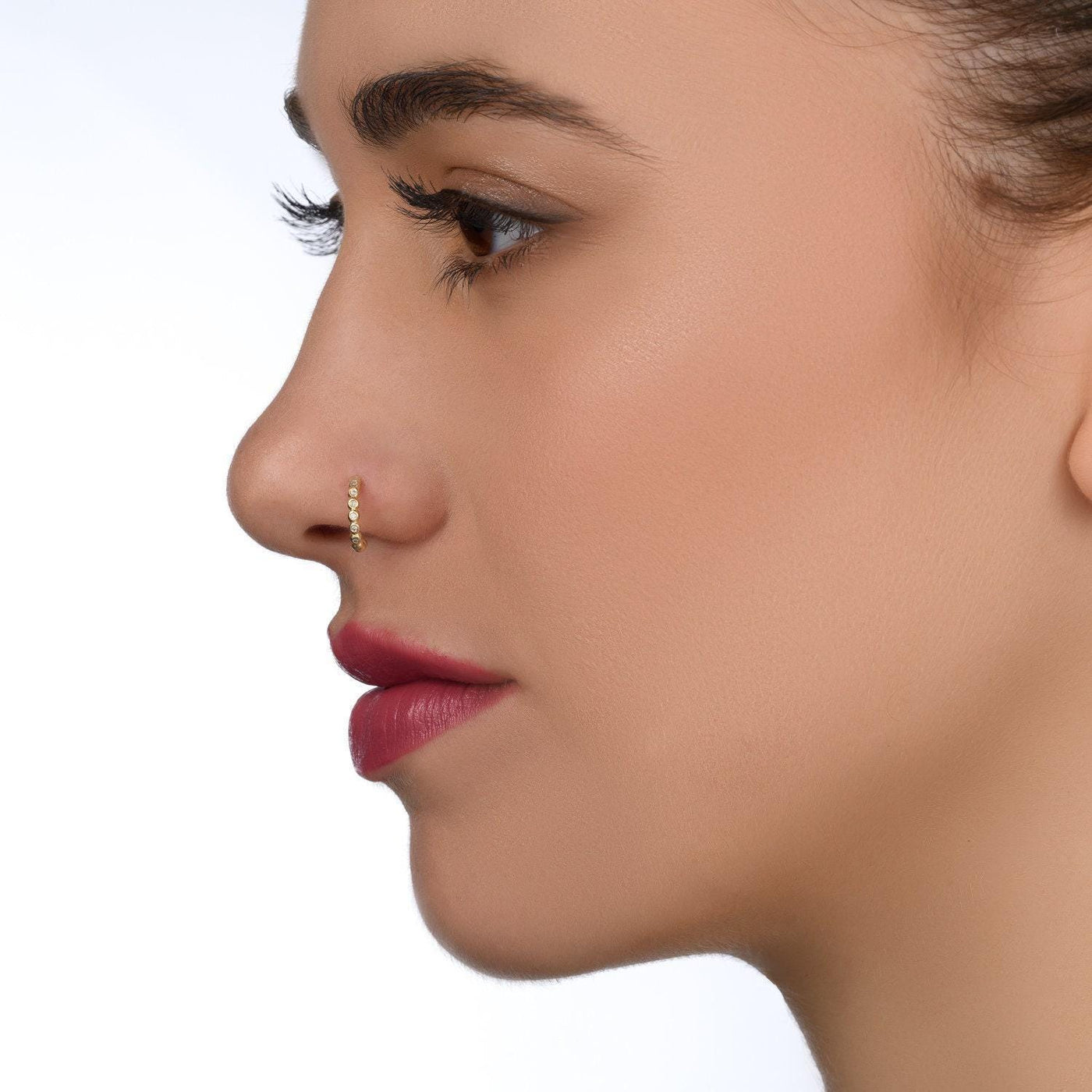 {"id":10788830707996,"title":"Diamond Nose Ring – Solid 14K Gold Nose Hoop with Genuine Diamonds, Bezel Setting","handle":"diamond-nose-ring-solid-14-k-gold-nose-hoop-with-genuine-diamonds-bezel-setting-23734426","description":"\u003cp\u003eThis diamond nose ring is a delicate solid 14K gold nose hoop designed to enhance your nostril piercing with genuine diamonds for a subtle, elegant shimmer. Crafted with a bezel setting jewelry technique, this dainty nose jewelry piece features 8 to 10 genuine 1mm diamonds totaling 0.05 carats, perfectly balanced on a minimalist gold ring that complements any style. Available in multiple piercing gauge sizes—20g, 18g, and 16g—and inner diameters of 7, 8, or 9 mm, this solid gold nose hoop delivers both comfort and style for your nostril piercing ring or ear cartilage ring. Handmade gold jewelry from Studio Meme ensures each piece is crafted with precision and care, offering you a gift for her nose that lasts with a commitment to quality.\u003c\/p\u003e\u003cbr\u003e\u003cp\u003eChoose this 14k gold nose ring to enjoy these features:\u003c\/p\u003e\u003cp\u003e- Solid 14K yellow gold construction for durability and hypoallergenic wear\u003c\/p\u003e\u003cp\u003e- Bezel setting jewelry that securely holds small diamond hoops for lasting sparkle\u003c\/p\u003e\u003cp\u003e- Multiple piercing gauge sizes to fit nostril, septum, and various ear cartilage rings including tragus, helix, rook, daith, and conch\u003c\/p\u003e\u003cp\u003e- Total diamond weight of 0.05 carats across finely set genuine diamonds\u003c\/p\u003e\u003cp\u003e- Inner diameters of 7mm, 8mm, or 9mm to suit your unique piercing size\u003c\/p\u003e\u003cp\u003e- Handmade gold jewelry crafted individually to honor your personal style\u003c\/p\u003e\u003cp\u003e- Delivered in elegant packaging ready as a gift for her nose or personal indulgence\u003c\/p\u003e\u003cbr\u003e\u003cp\u003eThis diamond nose ring’s precise craftsmanship ensures the hoop maintains its shape while offering a comfortable fit. The minimalist gold ring design enhances your natural beauty without overpowering it. Whether worn daily or on special occasions, the solid gold nose hoop combines tradition with modern elegance.\u003c\/p\u003e\u003cbr\u003e\u003cp\u003eStudio Meme specializes in handmade gold jewelry made to order in yellow, rose, and white solid 14K gold hues. Each piece undergoes thorough quality checks and is backed by our satisfaction guarantee. If you need sizes beyond the standard inner diameters or have questions about piercing gauge sizes, our customer service team is available seven days a week to assist you.\u003c\/p\u003e\u003cbr\u003e\u003cp\u003eElevate your nostril piercing ring collection with this refined diamond nose ring that blends subtle luxury with everyday wearability. Explore more at https:\/\/www.etsy.com\/shop\/StudioMeme and experience the quiet strength of tradition woven into each curve.\u003c\/p\u003e","published_at":"2026-03-06T23:30:30+02:00","created_at":"2026-03-06T23:29:52+02:00","vendor":"Studio Meme","type":"","tags":["14k gold","bezel set diamonds","diamond","gold","handmade","minimalist","nose piercing jewelry","nose-hoop","nose-ring","tiny"],"price":42200,"price_min":42200,"price_max":51900,"available":true,"price_varies":true,"compare_at_price":0,"compare_at_price_min":0,"compare_at_price_max":0,"compare_at_price_varies":false,"variants":[{"id":53967095398684,"title":"20g \/ 7mm (Internal) \/ Yellow 14k Gold","option1":"20g \/ 7mm (Internal)","option2":"Yellow 14k Gold","option3":null,"sku":"34a-20\/7-YG","requires_shipping":true,"taxable":true,"featured_image":null,"available":true,"name":"Diamond Nose Ring – Solid 14K Gold Nose Hoop with Genuine Diamonds, Bezel Setting - 20g \/ 7mm (Internal) \/ Yellow 14k Gold","public_title":"20g \/ 7mm (Internal) \/ Yellow 14k Gold","options":["20g \/ 7mm (Internal)","Yellow 14k Gold"],"price":42200,"weight":0,"compare_at_price":0,"inventory_management":"shopify","barcode":null,"requires_selling_plan":false,"selling_plan_allocations":[]},{"id":53967095431452,"title":"20g \/ 7mm (Internal) \/ Rose 14k Gold","option1":"20g \/ 7mm (Internal)","option2":"Rose 14k Gold","option3":null,"sku":"34a-20\/7-RG","requires_shipping":true,"taxable":true,"featured_image":null,"available":true,"name":"Diamond Nose Ring – Solid 14K Gold Nose Hoop with Genuine Diamonds, Bezel Setting - 20g \/ 7mm (Internal) \/ Rose 14k Gold","public_title":"20g \/ 7mm (Internal) \/ Rose 14k Gold","options":["20g \/ 7mm (Internal)","Rose 14k Gold"],"price":42200,"weight":0,"compare_at_price":0,"inventory_management":"shopify","barcode":null,"requires_selling_plan":false,"selling_plan_allocations":[]},{"id":53967095464220,"title":"20g \/ 7mm (Internal) \/ White 14k Gold","option1":"20g \/ 7mm (Internal)","option2":"White 14k Gold","option3":null,"sku":"34a-20\/7-WG","requires_shipping":true,"taxable":true,"featured_image":null,"available":true,"name":"Diamond Nose Ring – Solid 14K Gold Nose Hoop with Genuine Diamonds, Bezel Setting - 20g \/ 7mm (Internal) \/ White 14k Gold","public_title":"20g \/ 7mm (Internal) \/ White 14k Gold","options":["20g \/ 7mm (Internal)","White 14k Gold"],"price":44200,"weight":0,"compare_at_price":0,"inventory_management":"shopify","barcode":null,"requires_selling_plan":false,"selling_plan_allocations":[]},{"id":53967095496988,"title":"20g \/ 8mm (Internal) \/ Yellow 14k Gold","option1":"20g \/ 8mm (Internal)","option2":"Yellow 14k Gold","option3":null,"sku":"34a-20\/8-YG","requires_shipping":true,"taxable":true,"featured_image":null,"available":true,"name":"Diamond Nose Ring – Solid 14K Gold Nose Hoop with Genuine Diamonds, Bezel Setting - 20g \/ 8mm (Internal) \/ Yellow 14k Gold","public_title":"20g \/ 8mm (Internal) \/ Yellow 14k Gold","options":["20g \/ 8mm (Internal)","Yellow 14k Gold"],"price":43100,"weight":0,"compare_at_price":0,"inventory_management":"shopify","barcode":null,"requires_selling_plan":false,"selling_pl