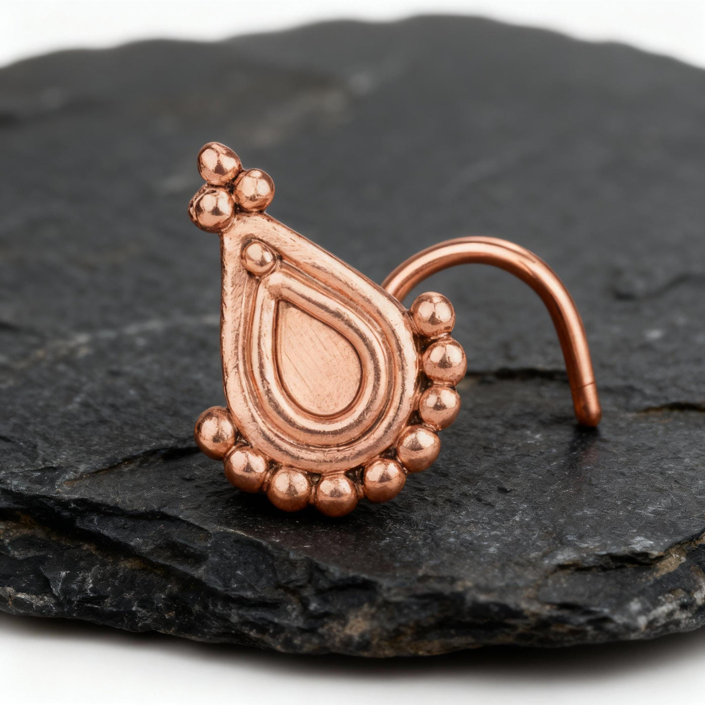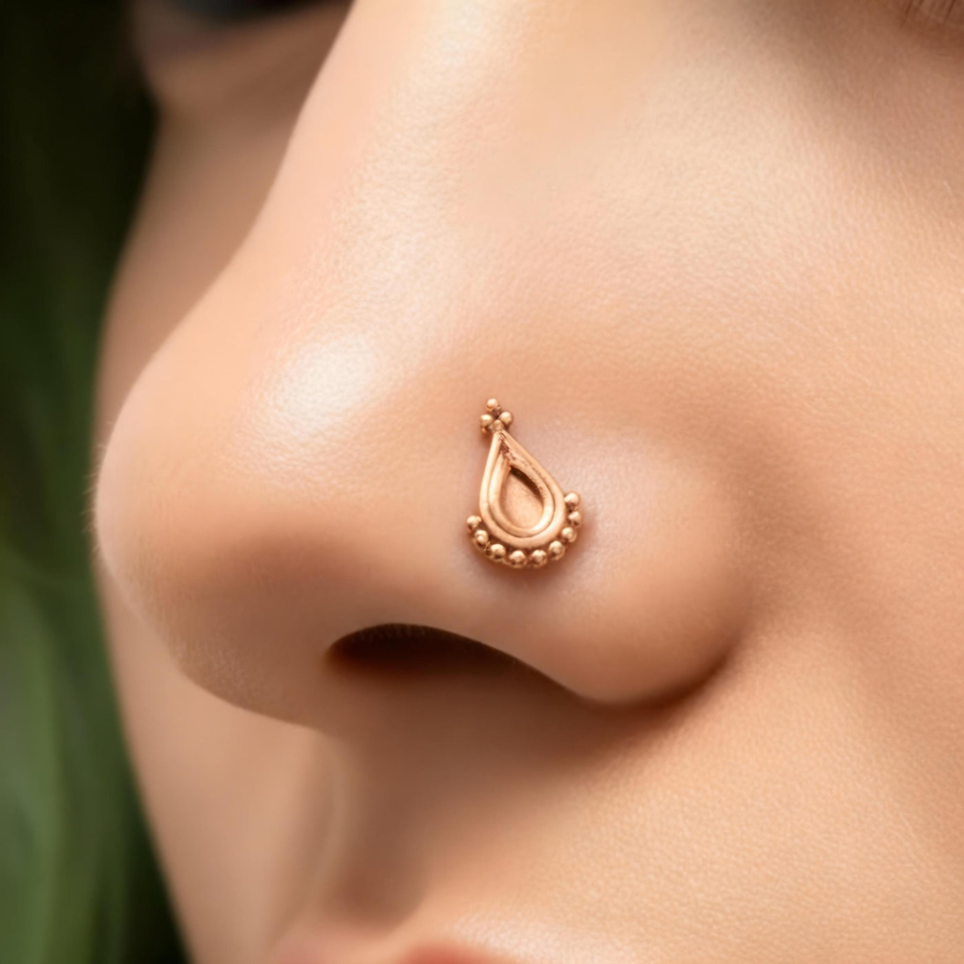 14k Rose Gold Nose Stud - Handmade Indian Design | Dainty Solid Gold Jewelry