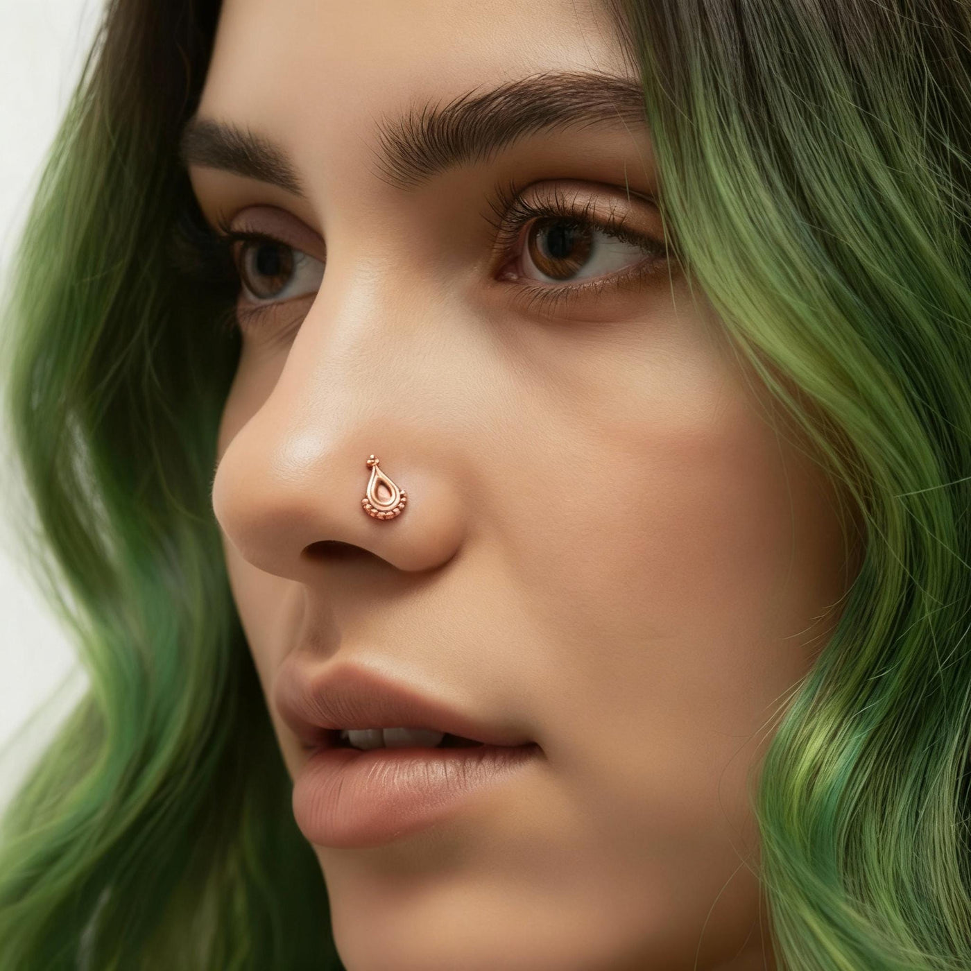 This 14k rose gold nose stud is a finely crafted solid gold nose ring designed to enhance your look with elegant, dainty nose jewelry. Handmade with precision, this Indian nose piercing piece offers a unique blend of traditional tribal nose ring design and modern style. The 14k rose gold nose stud fits comfortably for nostril cartilage piercing and delivers a stunning appearance that highlights your natural beauty while providing lasting durability.