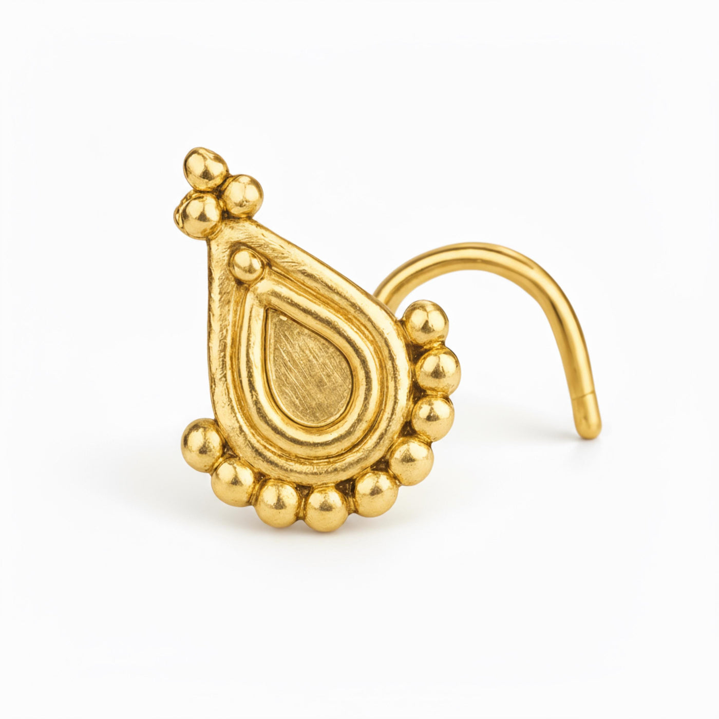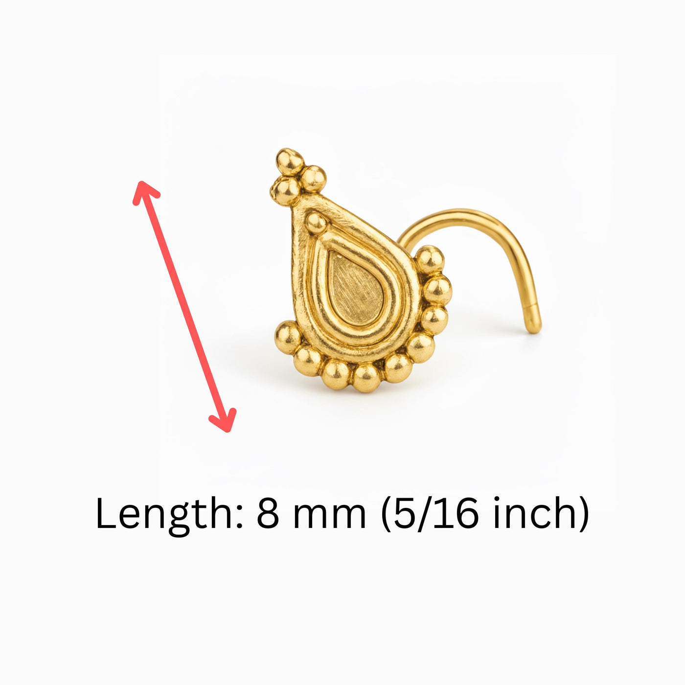 Experience the beauty of handcrafted gold studs inspired by Indian designs combined with modern craftsmanship. Treat yourself or someone special to this exquisite solid gold nose ring that turns heads and elevates any look.