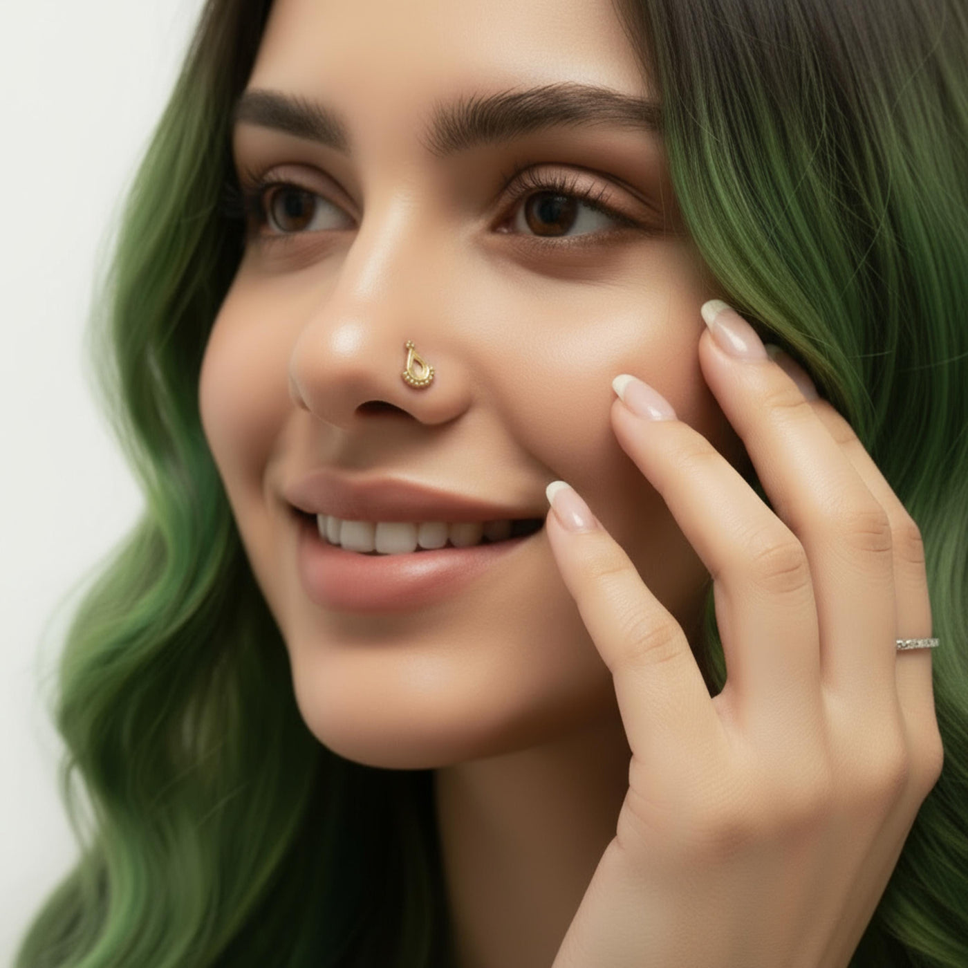 - Dainty nose jewelry with Indian tribal design influence