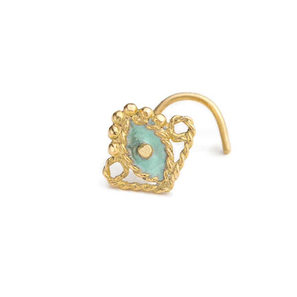 Jasmine is a delicate 14k gold tragus earring Indian-inspired style featuring two filigree arms hugging the drop outline of the enameled core. Intricately designed, innovative, and beautiful design that will certainly place you in the spotlight. Buy right now!