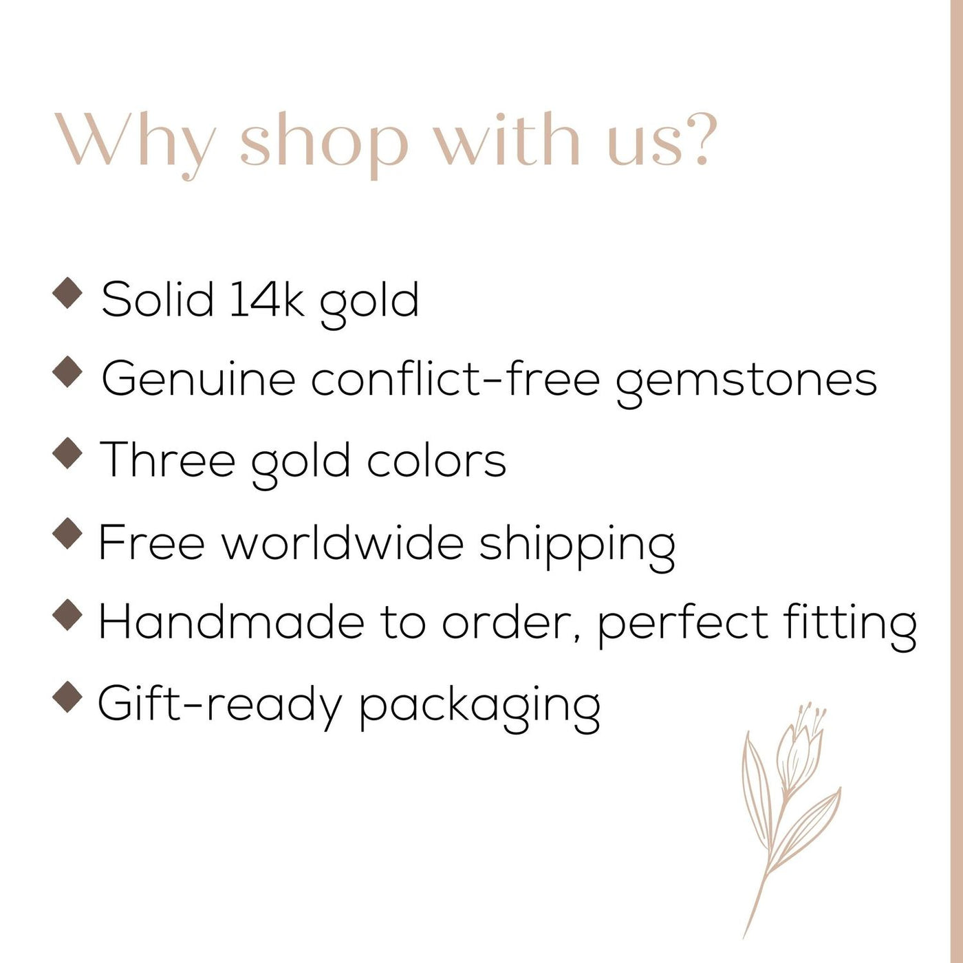 • All jewelry is handmade of hypoallergenic solid 14k gold