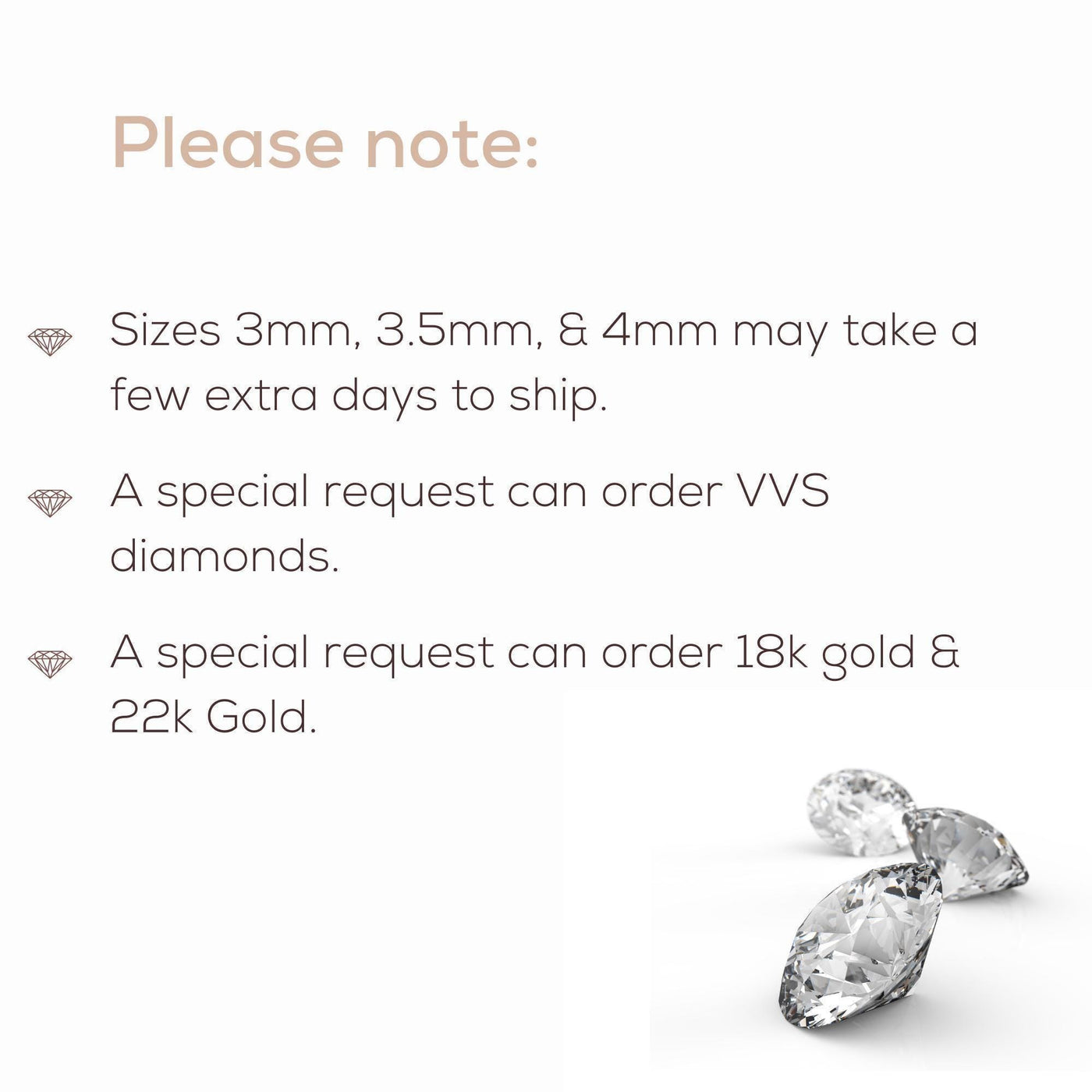- Diamond clarity SI/VS and color EFG for premium sparkle