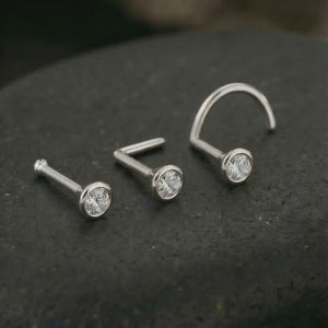 Diamond Nose Stud – 14k White Gold Bezel Setting Style | Natural Fair Trade Diamond