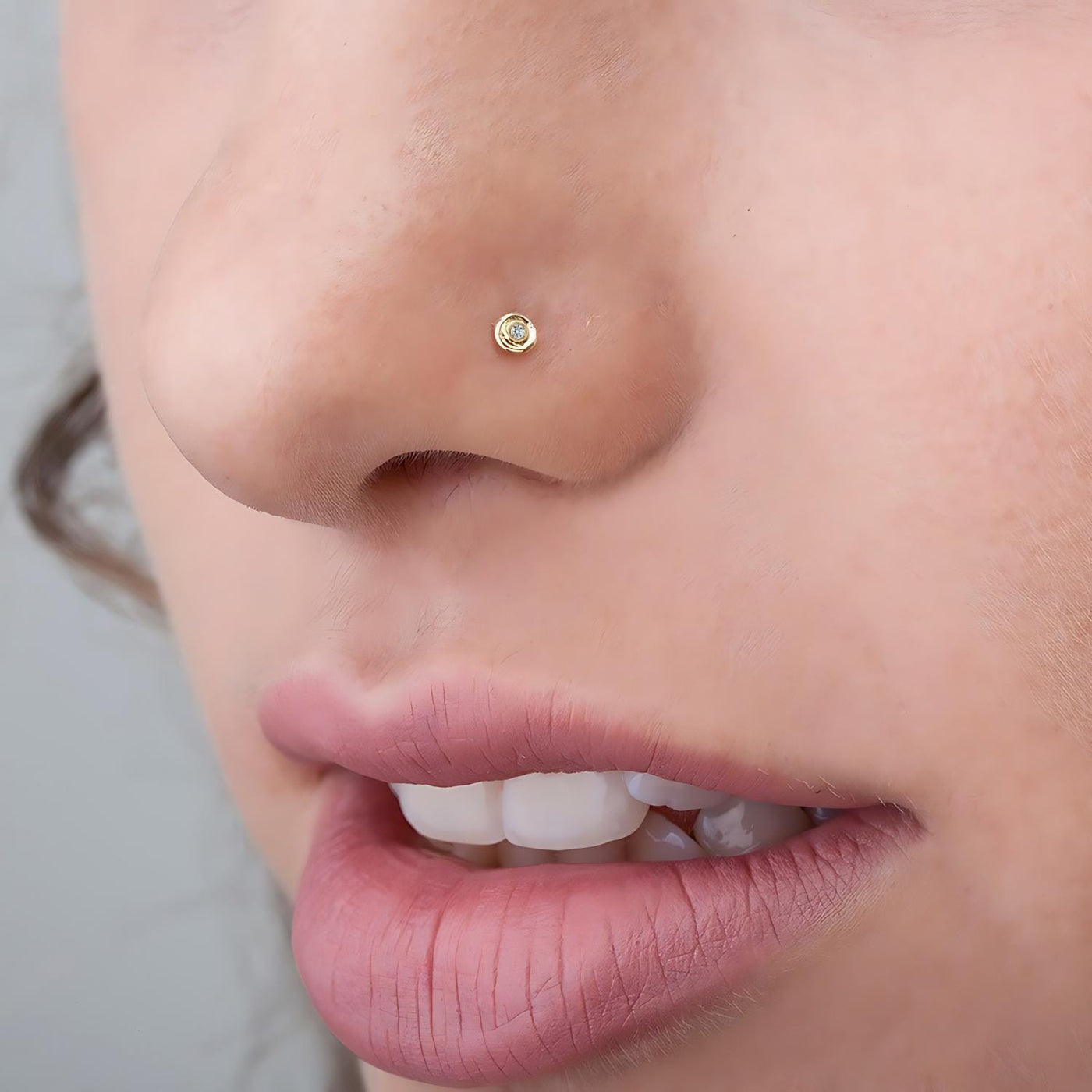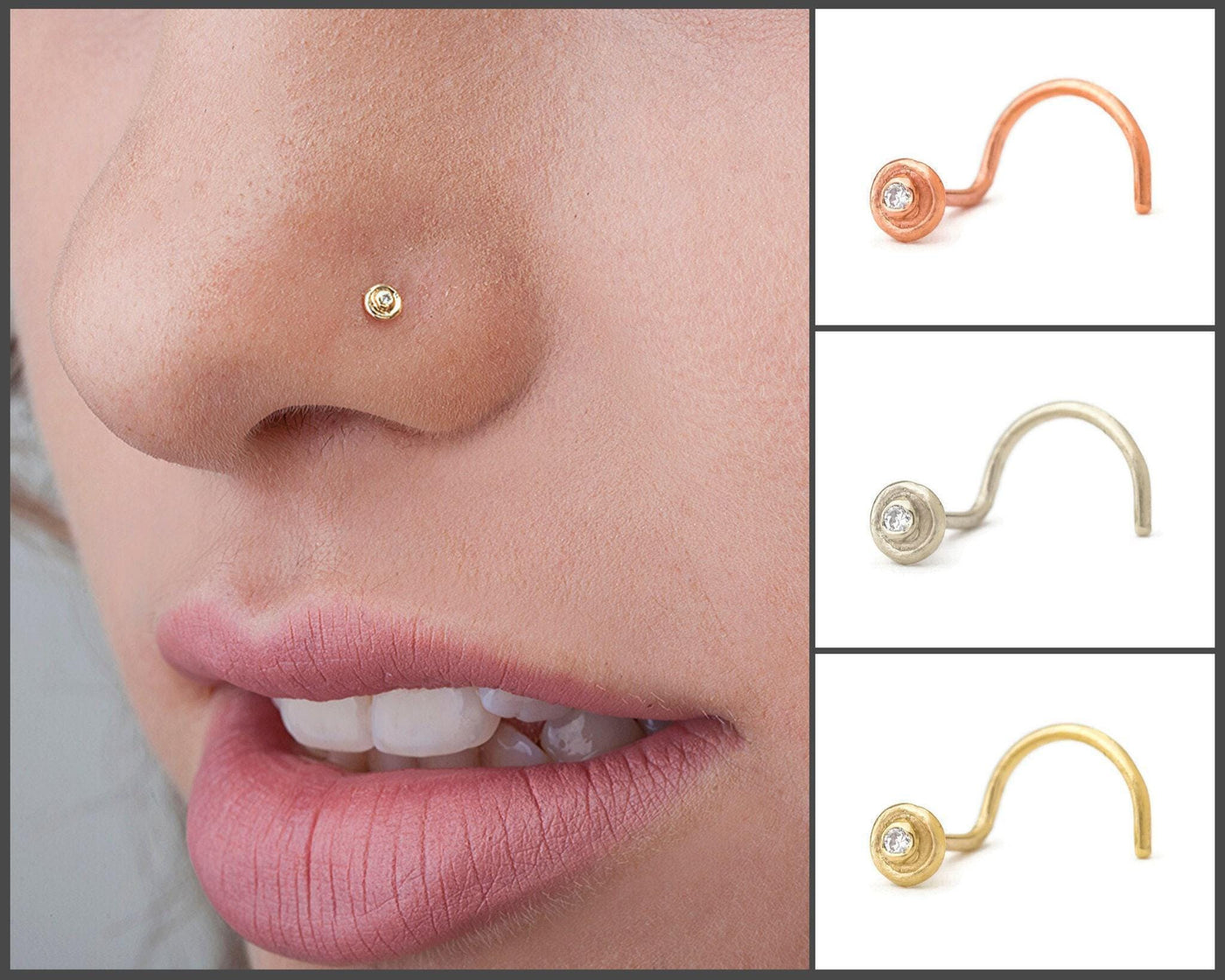 Diamond Nose Stud – Solid 14k Gold Minimalist Jewelry With 1mm Diamond Stone