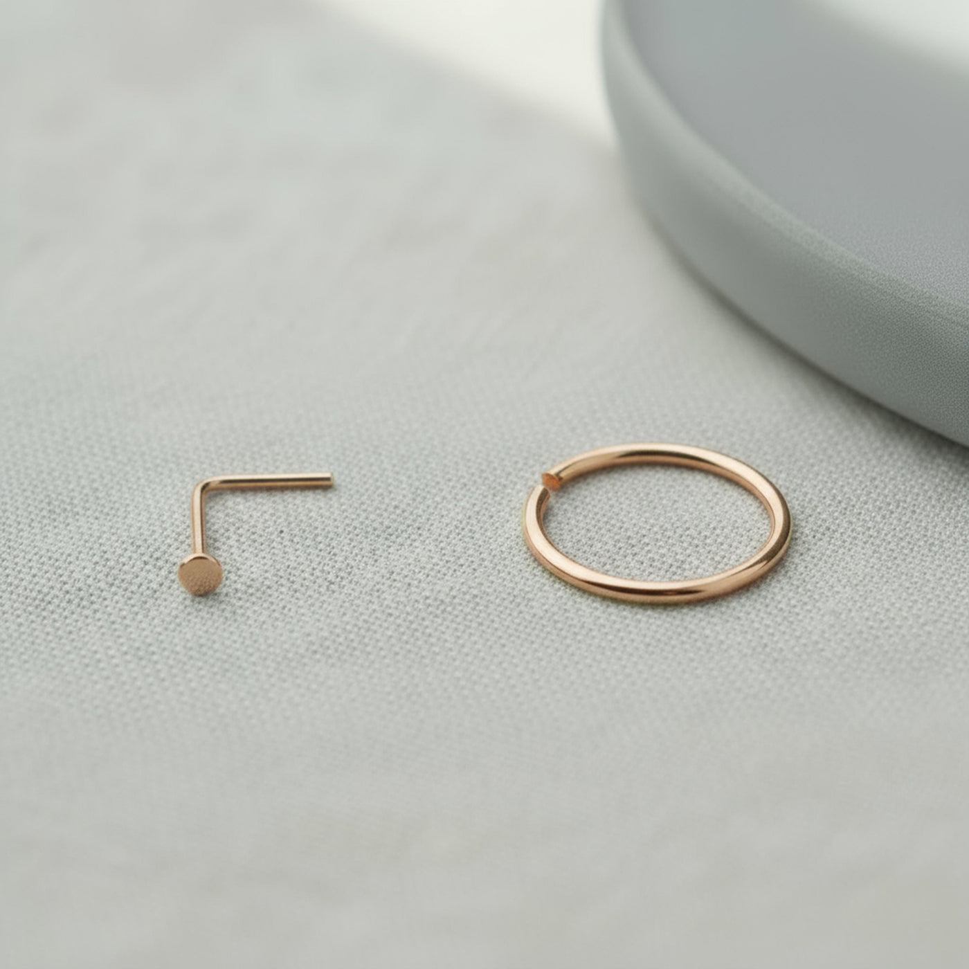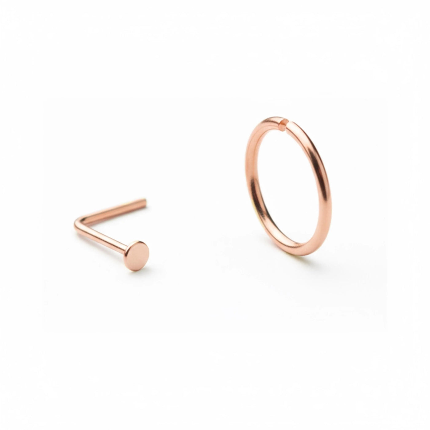 14k Rose Gold Nose Ring - Minimalist Solid Gold Nose Stud Set | Custom Sizes