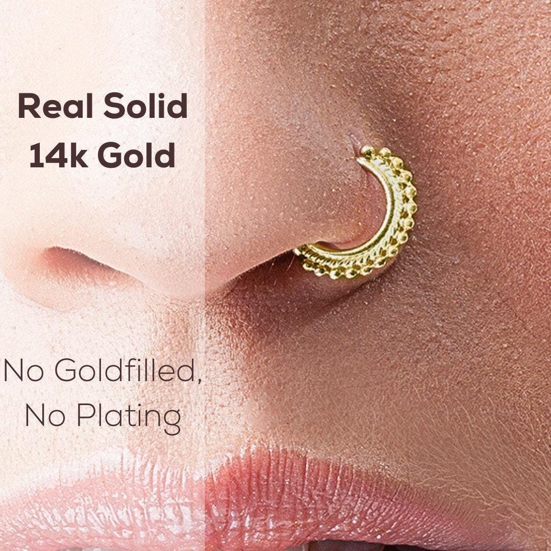 Solid Gold Nose Ring - Indian 14K Gold Nostril Jewelry | Dainty Nose Hoop