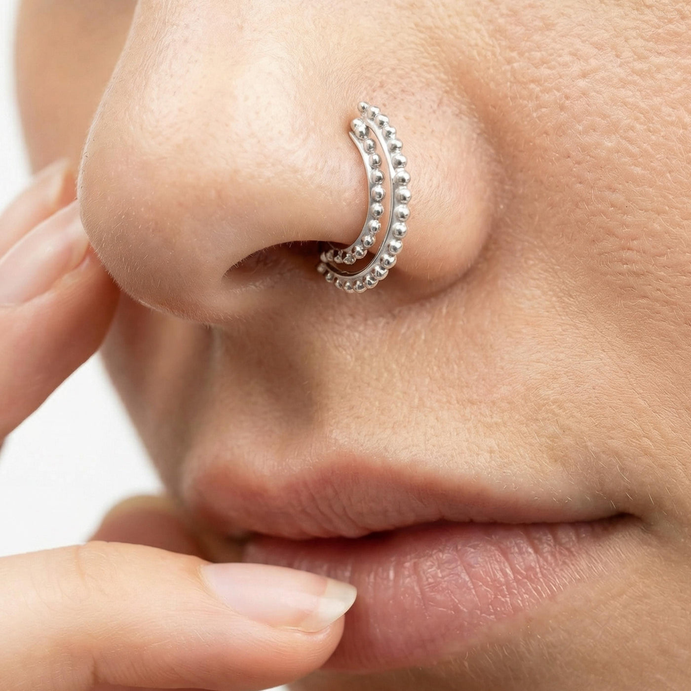 {"id":10788836770076,"title":"Sterling Silver Nose Hoop - Handmade 20 Gauge Dainty Silver Nose Ring","handle":"sterling-silver-nose-hoop-handmade-20-gauge-dainty-silver-nose-ring-23734292","description":"\u003cp\u003eOur sterling silver nose hoop is a dainty and elegant accessory designed to enhance your everyday look with subtle charm. This handmade nose hoop, crafted from high-quality 925 sterling silver, offers a lightweight and comfortable fit, making it the perfect choice for those who want a minimalist nose piercing jewelry piece that stands out. Measuring 20 gauge (0.8mm) with an 8mm inner diameter, this small silver hoop fits all nose and ear piercings, blending traditional Indian nose hoop inspiration with modern design for a timeless appeal.\u003c\/p\u003e\u003cbr\u003e\u003cp\u003eThis artisan nose hoop is carefully handmade to order, ensuring each custom nose ring matches your unique style and preferences. The precise craftsmanship delivers a comfortable nose hoop that maintains its shape without irritation, ideal for daily wear or special occasions.\u003c\/p\u003e\u003cbr\u003e\u003cp\u003eKey features include:\u003c\/p\u003e\u003cbr\u003e\u003cp\u003e- Made from premium 925 sterling silver for lasting shine and durability\u003c\/p\u003e\u003cp\u003e- Crafted in 20 gauge size for a perfect balance of subtlety and visibility\u003c\/p\u003e\u003cp\u003e- 8mm inner diameter suitable for most nose and ear piercings\u003c\/p\u003e\u003cp\u003e- Handmade nose hoop design inspired by traditional Indian nose hoops\u003c\/p\u003e\u003cp\u003e- Lightweight and comfortable nose piercing jewelry for all-day wear\u003c\/p\u003e\u003cp\u003e- Customizable sizes available upon request to ensure the best fit\u003c\/p\u003e\u003cp\u003e- Comes with a 100% satisfaction guarantee from Studio Meme\u003c\/p\u003e\u003cbr\u003e\u003cp\u003eAdditional benefits:\u003c\/p\u003e\u003cbr\u003e\u003cp\u003e- Fast shipping with secure packaging protects your jewelry during delivery\u003c\/p\u003e\u003cp\u003e- Responsive customer support available seven days a week for any questions\u003c\/p\u003e\u003cp\u003e- Versatile style complements both casual and formal outfits effortlessly\u003c\/p\u003e\u003cp\u003e- Part of our tribal silver jewelry collection that celebrates artistry and heritage\u003c\/p\u003e\u003cbr\u003e\u003cp\u003eStudio Meme is a boutique specializing in fine, handmade tribal silver jewelry that combines cultural tradition with contemporary minimalism. Each sterling silver nose hoop reflects expert craftsmanship and attention to detail, backed by positive customer reviews praising comfort and style. Whether you seek a dainty nose ring or an artisan nose hoop with cultural roots, this custom nose ring offers an elegant solution that enhances your natural beauty while providing all-day comfort.\u003c\/p\u003e","published_at":"2026-03-06T23:37:08+02:00","created_at":"2026-03-06T23:36:29+02:00","vendor":"Studio Meme","type":"","tags":["20 gauge","dainty","handmade","minimalist","nose-hoop","nose-ring","silver","silver nose ring","sterling silver","tiny"],"price":4100,"price_min":4100,"price_max":4800,"available":true,"price_varies":true,"compare_at_price":0,"compare_at_price_min":0,"compare_at_price_max":0,"compare_at_price_varies":false,"variants":[{"id":53967259664668,"title":"X Small 6mm 1\/4\" \/ 925 Sterling Silver","option1":"X Small 6mm 1\/4\"","option2":"925 Sterling Silver","option3":null,"sku":"39-S","requires_shipping":true,"taxable":true,"featured_image":null,"available":true,"name":"Sterling Silver Nose Hoop - Handmade 20 Gauge Dainty Silver Nose Ring - X Small 6mm 1\/4\" \/ 925 Sterling Silver","public_title":"X Small 6mm 1\/4\" \/ 925 Sterling Silver","options":["X Small 6mm 1\/4\"","925 Sterling Silver"],"price":4100,"weight":0,"compare_at_price":0,"inventory_management":"shopify","barcode":null,"requires_selling_plan":false,"selling_plan_allocations":[]},{"id":53967259697436,"title":"X Small 6mm 1\/4\" \/ 14k Yellow Gold Vermeil","option1":"X Small 6mm 1\/4\"","option2":"14k Yellow Gold Vermeil","option3":null,"sku":"39-S","requires_shipping":true,"taxable":true,"featured_image":null,"available":true,"name":"Sterling Silver Nose Hoop - Handmade 20 Gauge Dainty Silver Nose Ring - X Small 6mm 1\/4\" \/ 14k Yellow Gold Vermeil","public_title":"X Small 6mm 1\/4\" \/ 14k Yellow Gold Vermeil","options":["X Small 6mm 1\/4\"","14k Yellow Gold Vermeil"],"price":4800,"weight":0,"compare_at_price":0,"inventory_management":"shopify","barcode":null,"requires_selling_plan":false,"selling_plan_allocations":[]},{"id":53967259730204,"title":"Small - 7mm 9\/32\" \/ 925 Sterling Silver","option1":"Small - 7mm 9\/32\"","option2":"925 Sterling Silver","option3":null,"sku":"39-S","requires_shipping":true,"taxable":true,"featured_image":null,"available":true,"name":"Sterling Silver Nose Hoop - Handmade 20 Gauge Dainty Silver Nose Ring - Small - 7mm 9\/32\" \/ 925 Sterling Silver","public_title":"Small - 7mm 9\/32\" \/ 925 Sterling Silver","options":["Small - 7mm 9\/32\"","925 Sterling Silver"],"price":4100,"weight":0,"compare_at_price":0,"inventory_management":"shopify","barcode":null,"requires_selling_plan":false,"selling_plan_allocations":[]},{"id":53967259762972,"title":"Small - 7mm 9\/32\" \/ 14k Yellow Gold Vermeil","option1":"Small - 7mm 9\/32\"","option2":"14k Yellow Gold Vermeil","option3":null,"sku":"39-S","requires_shipping":true,"taxable":true,"featured_image":null,"available":true,"name":"Sterling Silver Nose Hoop - Handmade 20 Gauge Dainty Silver Nose Ring - Small - 7mm 9\/32\" \/ 14k Yellow Gold Vermeil","public_title":"Small - 7mm 9\/32\" \/ 14k Yellow Gold Vermeil","options":["Small - 7mm 9\/32\"","14k Yellow Gold Vermeil"],"price":4800,"weight":0,"compare_at_price":0,"inventory_management":"shopify","barcode":null,"requires_selling_plan":false,"selling_plan_allocations":[]},{"id":53967259795740,"title":"Medium - 8mm 5\/16\" \/ 925 Sterling Silver","option1":"Medium - 8mm 5\/16\