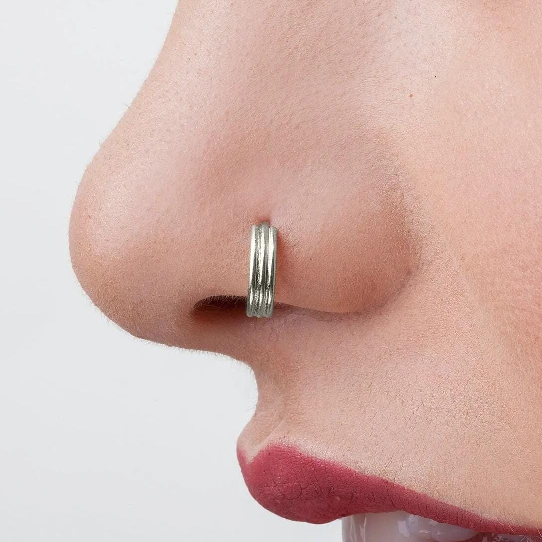 This sterling silver nose ring is a dainty handmade nose hoop designed to elevate your style while offering lasting comfort and elegance. Crafted from high-quality 925 sterling silver, this 7mm nose ring with a 20 gauge piercing wire provides a perfect fit for those seeking a lightweight nose hoop that suits daily wear. The minimalist silver ring draws inspiration from traditional Indian nose rings, blending cultural heritage with modern design for a unique and timeless accessory.