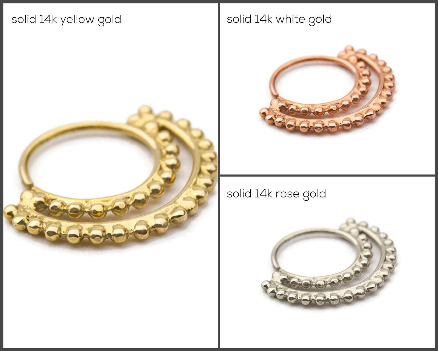 {"id":10788834378012,"title":"White 14K Gold Nose Ring - Indian Nose Hoop | Dainty Nostril Ring Handmade","handle":"white-14-k-gold-nose-ring-indian-nose-hoop-dainty-nostril-ring-handmade-23734314","description":"\u003cp\u003eThis Indian Nose Hoop is a white 14k gold nose ring designed for those who appreciate minimalist nose jewelry with a tribal nose ring style. Crafted as a dainty nostril ring, this solid white gold jewelry piece fits perfectly as a handmade nose ring for your nostril or other piercings. Made from premium 14 karat gold piercing material, this white 14k gold nose ring offers durability and elegance, ensuring your nose piercing jewelry stands out with subtle sophistication.\u003c\/p\u003e\u003cbr\u003e\u003cp\u003eAvailable in multiple gauges (22\/20\/18\/16 gauge corresponding to 0.6\/0.8\/1\/1.2mm) and inner diameters (7\/8\/9mm), this cartilage hoop ring can also be worn as a forward helix ring or conch hoop earring. Each size is carefully measured to provide the perfect fit and comfort for your piercing location. Whether you want a snug or low-profile look, the variety of sizes lets you customize your style precisely.\u003c\/p\u003e\u003cbr\u003e\u003cp\u003eThis tribal nose ring style piece features:\u003c\/p\u003e\u003cbr\u003e\u003cp\u003e- Solid white 14k gold construction that ensures long-lasting shine and hypoallergenic wear\u003c\/p\u003e\u003cp\u003e- Multiple size options: gauges from 22 to 16 and inner diameters from 7mm to 9mm to fit various piercings\u003c\/p\u003e\u003cp\u003e- Versatile design suitable for nostril, septum, cartilage, forward helix, conch, tragus, rook, daith, and more\u003c\/p\u003e\u003cp\u003e- Handmade craftsmanship tailored to your specific body features for maximum comfort and style\u003c\/p\u003e\u003cp\u003e- Comes in a gift ready jewelry box, making it an ideal present for yourself or loved ones\u003c\/p\u003e\u003cp\u003e- Backed by a 100% customer satisfaction guarantee and responsive support seven days a week\u003c\/p\u003e\u003cbr\u003e\u003cp\u003eThe precise specs include wire thickness measured by gauge size and hoop width measured by inner diameter. For example, a sample ring size includes a 20 gauge wire with a 7mm inner diameter (9\/32 inch), fitting comfortably on most ear and nose piercings. This ensures that whether you choose the smallest or largest size available, the fit will be secure without compromising style.\u003c\/p\u003e\u003cbr\u003e\u003cp\u003eCustomers praise this handmade nose ring for its quality and unique design. One shared how the care in packaging and craftsmanship made the experience special: \"I love wearing my nose ring from Studio Meme. It is larger and more noticeable than anything I've dared to wear before and I just love the flash and the beauty even inside the understated simplicity!\" Another said, \"I was looking for decades to find a nose ring like that! Very beautiful!\"\u003c\/p\u003e\u003cbr\u003e\u003cp\u003eStudio Meme specializes in handmade tribal jewelry made from solid 14 karat rose, white, and yellow gold. Every piece is made to order with attention to detail, ensuring you receive jewelry that fits perfectly and looks stunning. The gift ready jewelry box adds an extra touch of elegance whether buying for yourself or as a thoughtful gift.\u003c\/p\u003e\u003cbr\u003e\u003cp\u003eWhether you want to expand your collection with unique designs or find the perfect cartilage hoop ring or conch hoop earring to complement your look, this white 14k gold nose ring offers quality, style, and comfort all in one. Feel confident knowing you have high-quality solid white gold jewelry that enhances your natural beauty with minimalist charm.\u003c\/p\u003e\u003cbr\u003e\u003cp\u003eFor sizing help or custom orders beyond available sizes, contact us directly so we can assist you. Explore more dainty nostril rings and related pieces at our shop to complete your collection.\u003c\/p\u003e","published_at":"2026-03-06T23:33:20+02:00","created_at":"2026-03-06T23:32:45+02:00","vendor":"Studio Meme","type":"","tags":["14k gold","dainty","gold","handmade","indian style jewelry","minimalist","nose-hoop","nose-ring"],"price":15100,"price_min":15100,"price_max":21500,"available":true,"price_varies":true,"compare_at_price":0,"compare_at_price_min":0,"compare_at_price_max":0,"compare_at_price_varies":false,"variants":[{"id":53967192097052,"title":"14k Solid Yellow Gold \/ Thin 22g, S 9\/32\" 7mm","option1":"14k Solid Yellow Gold","option2":"Thin 22g, S 9\/32\" 7mm","option3":null,"sku":"39-WG","requires_shipping":true,"taxable":true,"featured_image":null,"available":true,"name":"White 14K Gold Nose Ring - Indian Nose Hoop | Dainty Nostril Ring Handmade - 14k Solid Yellow Gold \/ Thin 22g, S 9\/32\" 7mm","public_title":"14k Solid Yellow Gold \/ Thin 22g, S 9\/32\" 7mm","options":["14k Solid Yellow Gold","Thin 22g, S 9\/32\" 7mm"],"price":15100,"weight":0,"compare_at_price":0,"inventory_management":"shopify","barcode":null,"requires_selling_plan":false,"selling_plan_allocations":[]},{"id":53967192129820,"title":"14k Solid Yellow Gold \/ Thin 22g, M 5\/16\" 8mm","option1":"14k Solid Yellow Gold","option2":"Thin 22g, M 5\/16\" 8mm","option3":null,"sku":"39-WG","requires_shipping":true,"taxable":true,"featured_image":null,"available":true,"name":"White 14K Gold Nose Ring - Indian Nose Hoop | Dainty Nostril Ring Handmade - 14k Solid Yellow Gold \/ Thin 22g, M 5\/16\" 8mm","public_title":"14k Solid Yellow Gold \/ Thin 22g, M 5\/16\" 8mm","options":["14k Solid Yellow Gold","Thin 22g, M 5\/16\" 8mm"],"price":15700,"weight":0,"compare_at_price":0,"inventory_management":"shopify","barcode":null,"requires_selling_plan":false,"selling_plan_allocations":[]},{"id":53967192162588,"title":"14k Solid Yellow Gold \/ Thin 22g, L 11\/32\" 9mm","option1":"14k Solid Yellow Gold","option2":"Thin 22g, L 11\/32\" 9mm","option3":null,"sku":"39-WG","requires_shipping":true,"taxable":true,"featured_image":null,"available":true,"name