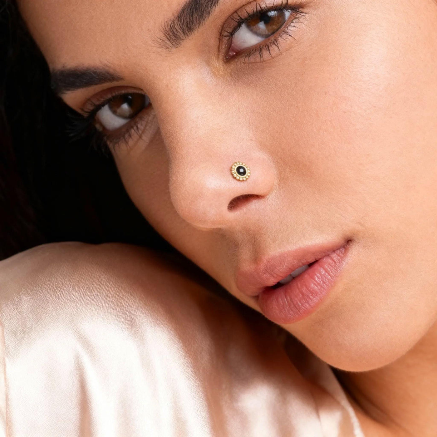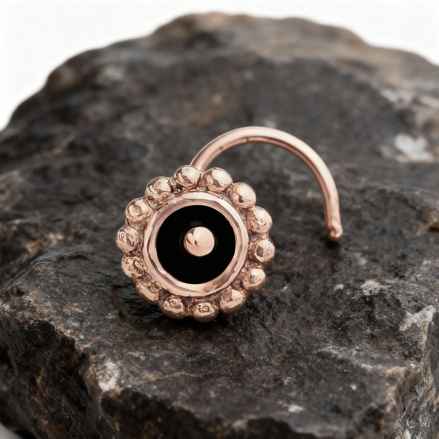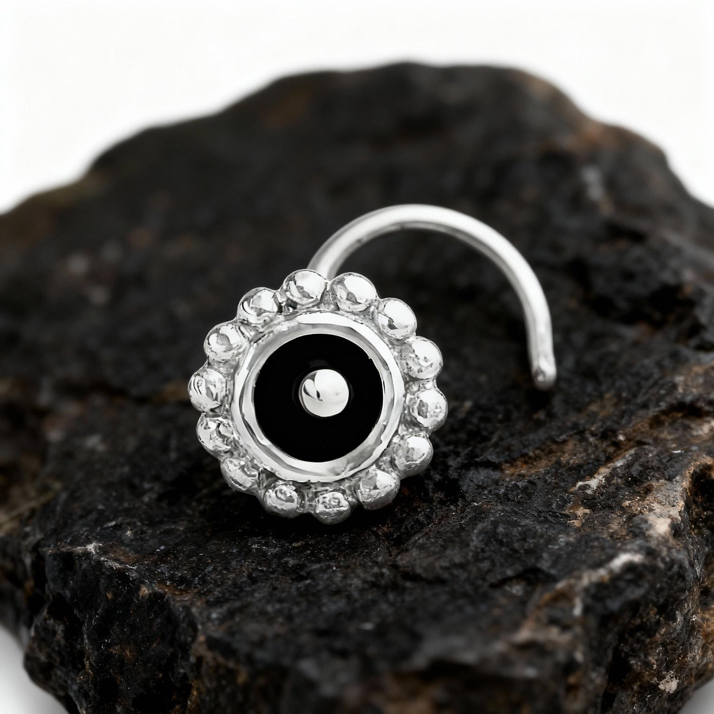 Elevate your look with this exquisite black enamel stud that pairs perfectly with other fine jewelry pieces or stands alone as an elegant nose accent. Explore more unique designs at Studio Meme’s shop online and experience the blend of tradition and modern craftsmanship.