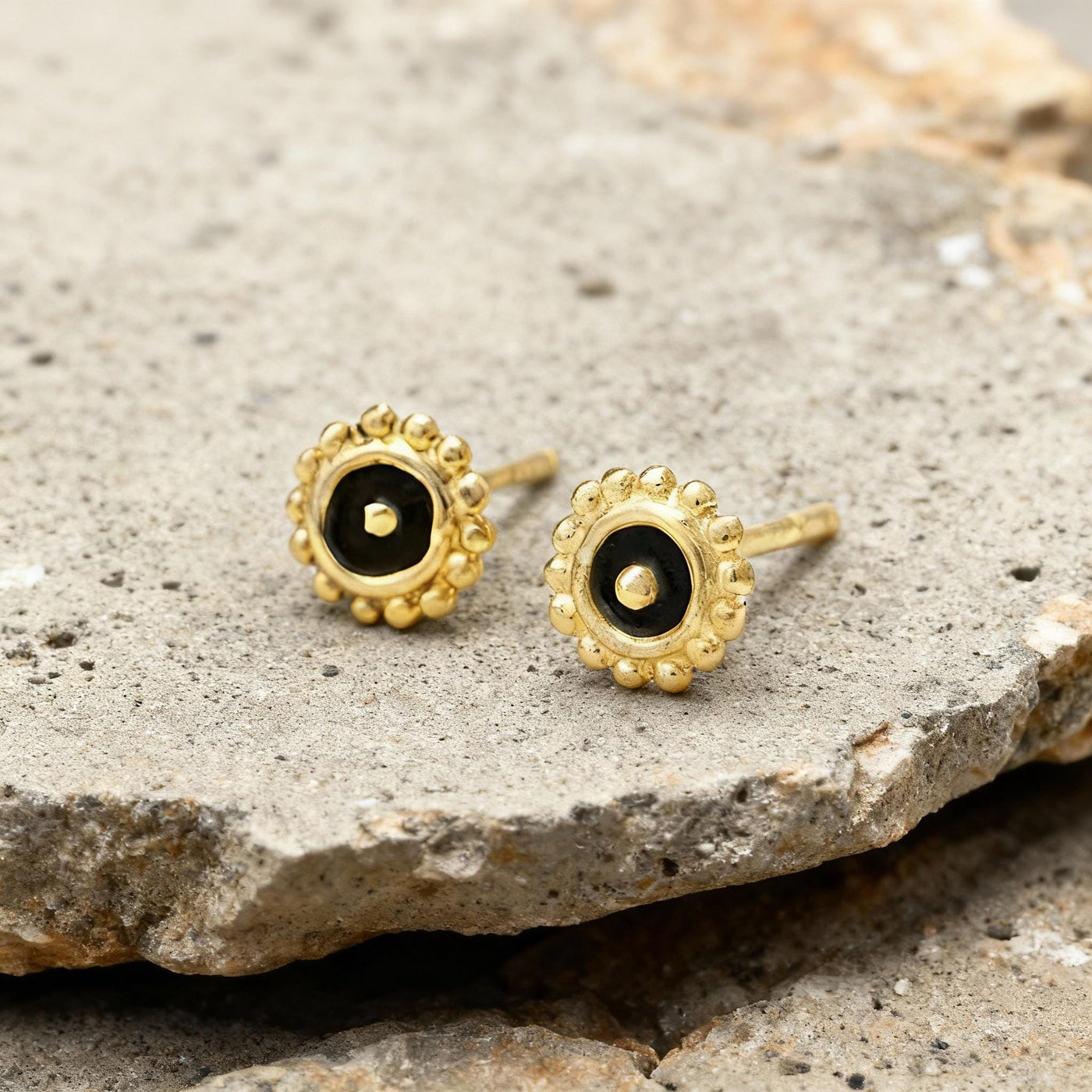 14K Gold Nose Stud – Tribal Nose Jewelry with Black Enamel & Secure Screw Back