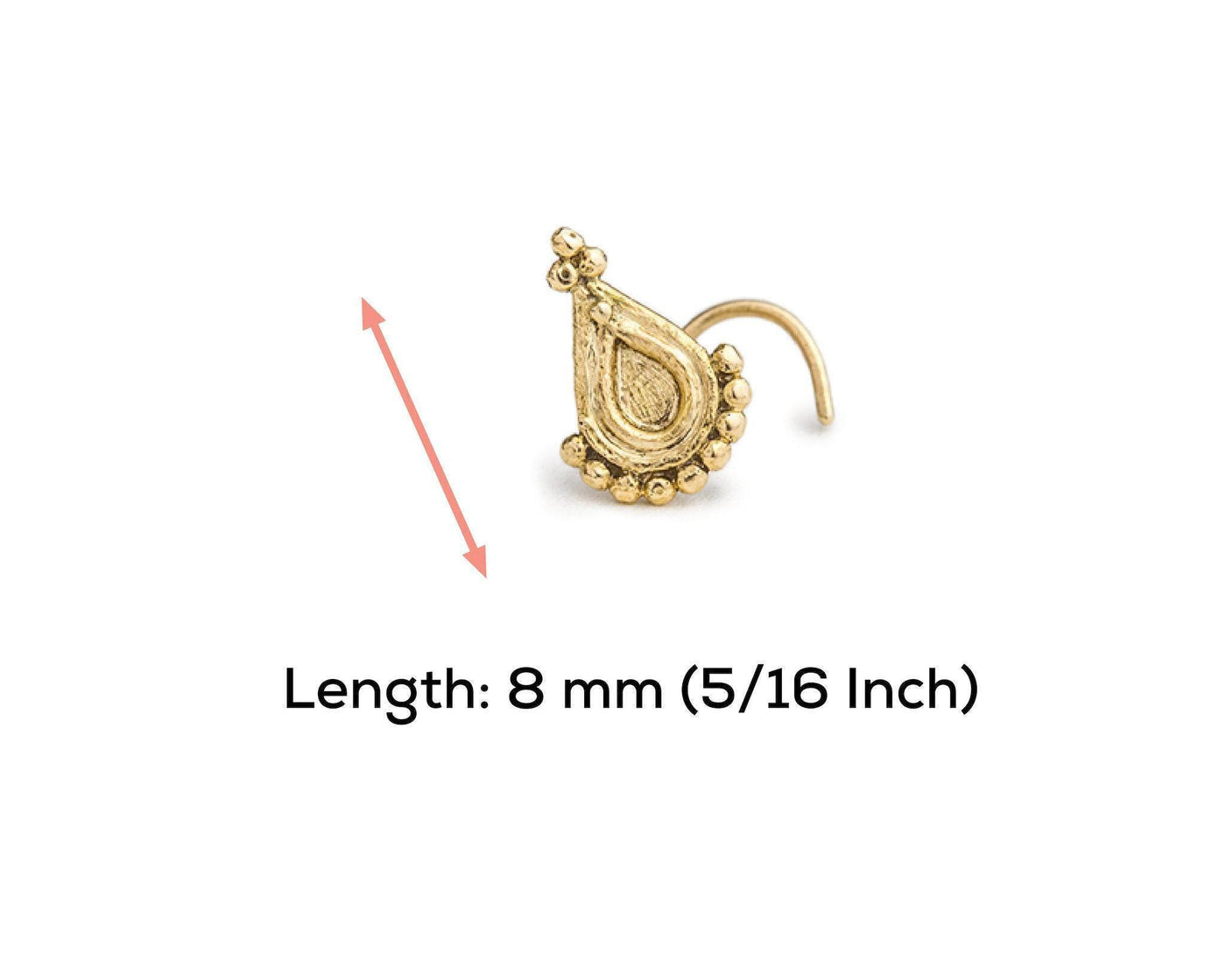 This traditional Indian nose stud combines handmade tribal nose jewelry craftsmanship with precise engineering to deliver both beauty and durability. Available in multiple gauges (22, 20, 18, 16), it caters to different piercing sizes and personal preferences. The yellow gold nostril ring is lightweight yet robust, offering a gentle fit that complements your natural contours without irritation.