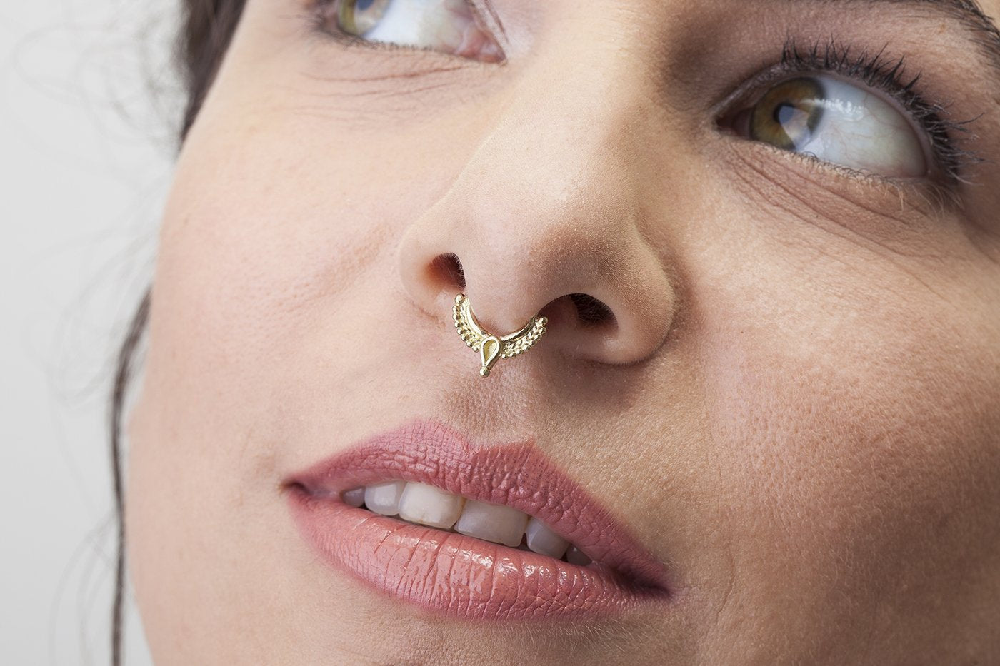 {"id":1498780893295,"title":"14k Gold with Black Enamel Septum Hoop Nose Jewelry - Veronica","handle":"sepveronica","description":"\u003ch2 class=\"ui-title-bar__title\"\u003e\u003cspan style=\"font-weight: 400;\"\u003e14k Gold with Black Enamel Septum Hoop Nose Jewelry - Veronica\u003c\/span\u003e\u003c\/h2\u003e\u003ch2\u003e\u003cspan style=\"font-weight: 400;\"\u003eThe flattering Veronica septum hoop is rich in detail. It has stunning tribal jewelry features as well as a fine black enamel top. The ring is superbly made and special. It's a definite head spinner that demonstrates your trendy look. Suits the septum and the nose piercings. A great addition to your collection.\u003c\/span\u003e\u003c\/h2\u003e\u003cp\u003e\u003cbr\u003e\u003c\/p\u003e\u003cb\u003eFeatures:\u003c\/b\u003e\u003cul\u003e\n\u003cli style=\"font-weight: 400;\"\u003e\u003cspan style=\"font-weight: 400;\"\u003eStandout style single handmade gold septum ring.\u003c\/span\u003e\u003c\/li\u003e\n\u003cli style=\"font-weight: 400;\"\u003e\u003cspan style=\"font-weight: 400;\"\u003eFlawless and handmade SOLID 14k gold hypoallergenic (No plating, NOT gold-filled).\u003c\/span\u003e\u003c\/li\u003e\n\u003cli style=\"font-weight: 400;\"\u003e\u003cspan style=\"font-weight: 400;\"\u003eMultipurpose jewelry suits most of the nose \u0026amp; ear piercings. It brings a trendy glow to your outfit.\u003c\/span\u003e\u003c\/li\u003e\n\u003cli style=\"font-weight: 400;\"\u003e\u003cspan style=\"font-weight: 400;\"\u003eComes in a beautifully made jewelry box that would be ready to be offered as a gift.\u003c\/span\u003e\u003c\/li\u003e\n\u003cli style=\"font-weight: 400;\"\u003e\u003cspan style=\"font-weight: 400;\"\u003eCustomized and designed to complement a perfect fit.\u003c\/span\u003e\u003c\/li\u003e\n\u003c\/ul\u003e\u003cbr\u003e\u003cbr\u003e\u003cp\u003e\u003cstrong\u003e\u003cem\u003e- In need of a different size\u003cspan\u003e♦\u003c\/span\u003e Confused with sizing\u003cspan\u003e♦\u003c\/span\u003e Contact us now!\u003c\/em\u003e\u003c\/strong\u003e\u003c\/p\u003e\u003cp\u003e\u003cbr\u003e\u003cspan\u003e♦♦♦\u003c\/span\u003e\u003cbr\u003e Here is some of what customers had to say about our jewelry:\u003cbr\u003e\u003cbr\u003e I love the care with which my nose ring was made. I could feel the love and devotion the moment I picked up the package from the post office (it arrived right when promised!) The box was done up with beauty and grace and I could feel the whole things pulsing. I love wearing my nose ring from Studio Meme. It is larger and more noticeable than anything I've dared to wear before and I just love the flash and the beauty even inside the understated simplicity! \u003c\/p\u003e\u003cp\u003e~Sulis\u003c\/p\u003e\u003cp\u003e\u003cbr\u003e I was looking for decades to find jewelry that! Very beautiful! Thank you so much! \u003c\/p\u003e\u003cp\u003e~Anna\u003c\/p\u003e\u003cp\u003e\u003cbr\u003e It's really beautiful, and way more interesting than a plain ring! \u003c\/p\u003e\u003cp\u003e~Laura\u003c\/p\u003e\u003cp\u003e\u003cbr\u003e\u003cspan\u003e♦♦♦\u003c\/span\u003e\u003cbr\u003e Studio Meme is a jewelry boutique focusing on handmade dainty tribal jewelry.\u003cbr\u003e\u003cbr\u003e With Studio Meme you'll get: \u003cbr\u003e\u003cbr\u003e\u003cspan\u003e♦\u003c\/span\u003e JEWELRY HANDCRAFTED ESPECIALLY FOR YOU\u003cbr\u003e All the items in our shop are made to order, meaning once you order it, we custom make it fit your needs exactly.\u003c\/p\u003e\u003cp\u003e\u003cspan\u003e♦\u003c\/span\u003e TO EXPAND YOUR COLLECTION WITH OUR LARGE VARIETY OF UNIQUE DESIGNS\u003cbr\u003e We have a large selection of designs, handmade to unmatched quality from hypoallergenic solid 14 karats rose, white, \u0026amp; yellow gold. \u003c\/p\u003e\u003cp\u003e\u003cbr\u003e\u003cspan\u003e♦\u003c\/span\u003e ALL YOUR QUESTIONS ANSWERED\u003c\/p\u003e\u003cp\u003e7 days a week, we're here to be asked \u0026amp; consulted with.\u003c\/p\u003e\u003cp\u003e\u003cspan\u003e♦\u003c\/span\u003e COMPLETELY RELIABLE \u0026amp; SAFE PURCHASE\u003cbr\u003e Established in 2013, we have professionally served thousands of happy customers.\u003c\/p\u003e\u003cp\u003e\u003cbr\u003e\u003cspan\u003e♦\u003c\/span\u003e SATISFIED. NO MATTER WHAT.\u003cbr\u003e 100% customer satisfaction guarantee. We'll never ditch you unhappy. Contact us with any concern.\u003c\/p\u003e\u003cp\u003e\u003cbr\u003e Thank you for visiting our shop. May blessing be upon you!\u003c\/p\u003e","published_at":"2025-12-31T16:36:57+02:00","created_at":"2018-09-06T09:24:12+03:00","vendor":"Studio Meme - Dainty Tribal Jewelry","type":"Nose Jewelry","tags":["Bold","Ethnic","Hoop","nose jewelry","nose piercings","Septum Jewelry","Statement Nose Jewelry"],"price":9500,"price_min":9500,"price_max":9500,"available":true,"price_varies":false,"compare_at_price":0,"compare_at_price_min":0,"compare_at_price_max":0,"compare_at_price_varies":false,"variants":[{"id":13354523525231,"title":"20ga (0.8 mm) \/ Small 9\/32 ″ (7 mm) \/ Solid 14k Yellow Gold","option1":"20ga (0.8 mm)","option2":"Small 9\/32 ″ (7 mm)","option3":"Solid 14k Yellow Gold","sku":"53-20\/7-YG","requires_shipping":true,"taxable":true,"featured_image":null,"available":true,"name":"14k Gold with Black Enamel Septum Hoop Nose Jewelry - Veronica - 20ga (0.8 mm) \/ Small 9\/32 ″ (7 mm) \/ Solid 14k Yellow Gold","public_title":"20ga (0.8 mm) \/ Small 9\/32 ″ (7 mm) \/ Solid 14k Yellow Gold","options":["20ga (0.8 mm)","Small 9\/32 ″ (7 mm)","Solid 14k Yellow Gold"],"price":9500,"weight":0,"compare_at_price":0,"inventory_management":null,"barcode":null,"requires_selling_plan":false,"selling_plan_allocations":[]},{"id":13354523557999,"title":"20ga (0.8 mm) \/ Small 9\/32 ″ (7 mm) \/ Solid 14k Rose Gold","option1":"20ga (0.8 mm)","option2":"Small 9\/32 ″ (7 mm)","option3":"Solid 14k Rose Gold","sku":"53-20\/7-RG","requires_shipping":true,"taxable":true,"featured_im