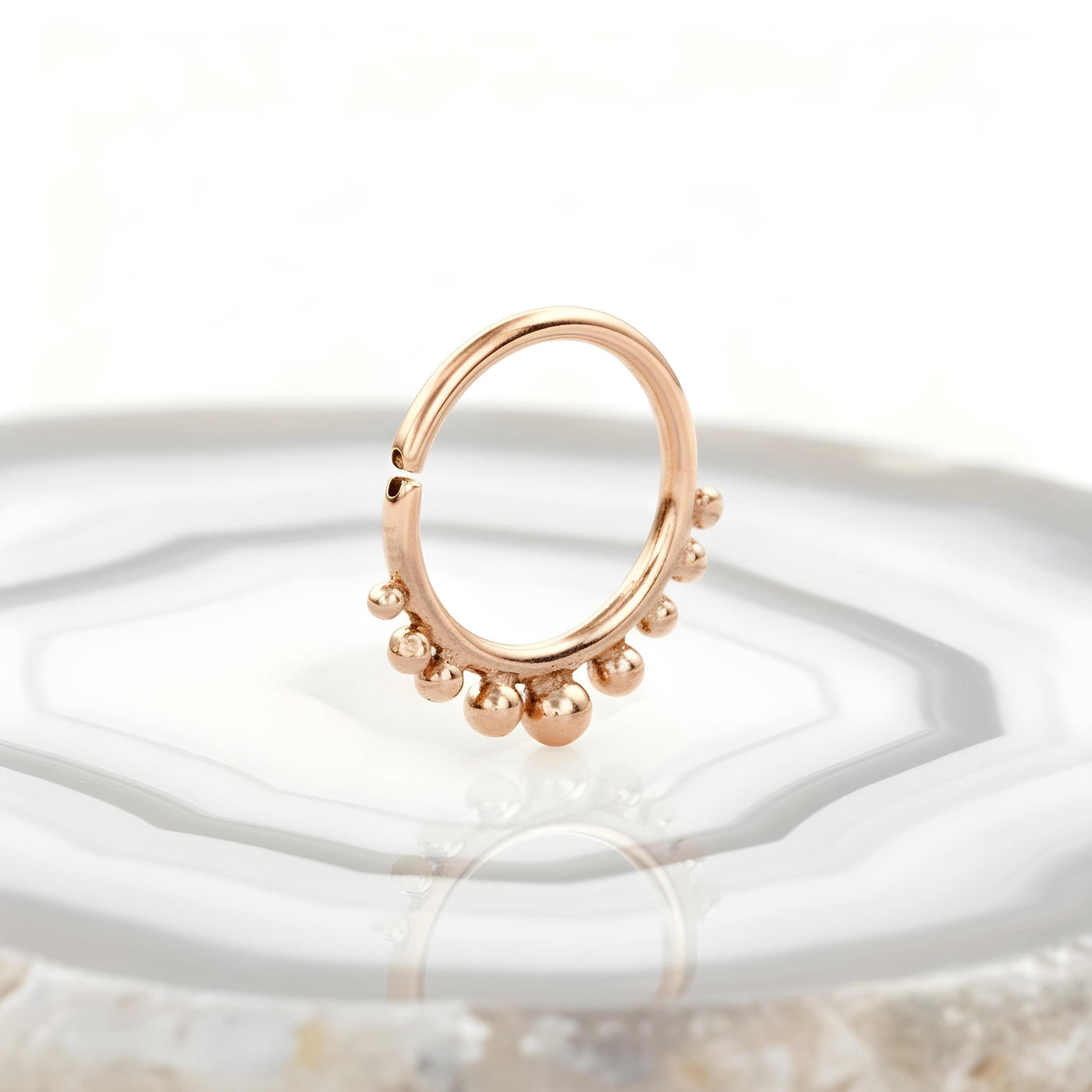 I got the nose ring and thr item is just as described. Super nice quality. I did get a size too small a still tried to fit it on my nose. But instead will save it for my ears and order a matching one. I could also use it for tragus or upper ear piercing as well. Very fine :)