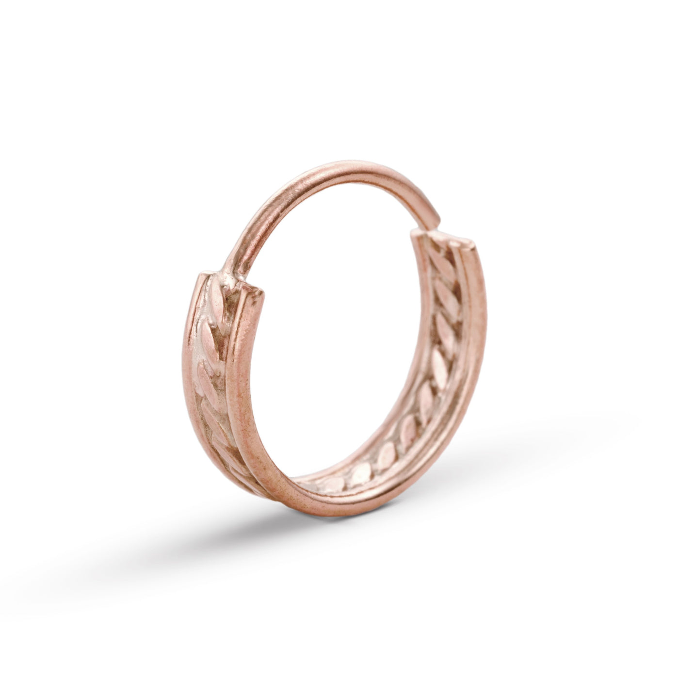 {"id":2226531663983,"title":"14k Gold Helix Earring - Handmade Solid Gold Hoop Jewelry | Custom Fit","handle":"sheyenne-helix-ring","description":"The 14k gold helix earring is a handmade solid gold hoop jewelry piece designed to bring a natural, personal touch to your ear piercing. Crafted to fit the delicate curve of your helix, this classic piercing ring offers a custom fit that feels like it was shaped by the flow of a gentle river. Made from solid gold jewelry in yellow, white, or rose gold, it rests lightly on your skin, warm and smooth as river stones warmed by the sun. This 14k gold helix earring transforms your piercing into an intimate expression of form and texture, blending heritage with modern craftsmanship.\n\nEach handmade gold earring is created from pure 14k hypoallergenic gold, ensuring it is kind to sensitive skin while maintaining durability and shine. The hypoallergenic ear hoop design reduces irritation and allows you to wear it comfortably throughout the day. This helix piercing jewelry also works beautifully as daith and tragus earrings, offering a versatile addition to your collection of ear piercing accessories. Its subtle pattern echoes tribal motifs, carved softly like leaves pressed between pages.\n\nFeatures:\n\n- Handmade from 14k solid gold jewelry available in yellow, white, or rose gold\n- Custom fit helix hoop shaped for precise comfort and secure wear\n- Hypoallergenic ear hoop crafted to soothe sensitive skin\n- Suitable for helix, daith, and tragus piercings as stylish ear cuffs\n- Comes in an elegant jewelry box, ready as a thoughtful gift\n- Classic piercing ring design blending tribal-inspired patterns with modern simplicity\n- Personalized gold hoops tailored to your size preferences\n\nThis piece carries the quiet strength of tradition and the care of an artisan’s hand. Each curve and line is shaped with intention, creating not just jewelry but a connection between body and earth. Studio Meme - Dainty Tribal Jewelry stands behind this creation with a commitment to quality and customer satisfaction. If you need assistance with sizing or have questions about your custom fit helix hoop, our team is ready to help.\n\nHear what others have shared: “I love the care with which my nose ring was made… I could feel the love and devotion the moment I picked up the package,” says Sulis. Anna found her long-sought septum ring here: “Very beautiful! Thank you so much!” Laura describes it simply as “really beautiful, and way more interesting than a plain earring.”\n\nThis 14k gold helix earring invites you to wear a piece that breathes with you—each moment catching light like leaves stirred by wind—quietly present yet deeply felt.","published_at":"2025-11-04T15:59:55+02:00","created_at":"2019-05-14T11:44:09+03:00","vendor":"Studio Meme - Dainty Tribal Jewelry","type":"Helix Jewelry","tags":["Ear Jewelry","Hoop Earrings","Septum Jewelry","Tragus Jewelry"],"price":9100,"price_min":9100,"price_max":9100,"available":true,"price_varies":false,"compare_at_price":null,"compare_at_price_min":0,"compare_at_price_max":0,"compare_at_price_varies":false,"variants":[{"id":20735383765103,"title":"18ga (1 mm) \/ Medium 5\/16 \" (8 mm) \/ Solid 14k Yellow Gold","option1":"18ga (1 mm)","option2":"Medium 5\/16 \" (8 mm)","option3":"Solid 14k Yellow Gold","sku":"111-18\/8-YG","requires_shipping":true,"taxable":true,"featured_image":null,"available":true,"name":"14k Gold Helix Earring - Handmade Solid Gold Hoop Jewelry | Custom Fit - 18ga (1 mm) \/ Medium 5\/16 \" (8 mm) \/ Solid 14k Yellow Gold","public_title":"18ga (1 mm) \/ Medium 5\/16 \" (8 mm) \/ Solid 14k Yellow Gold","options":["18ga (1 mm)","Medium 5\/16 \" (8 mm)","Solid 14k Yellow Gold"],"price":9100,"weight":0,"compare_at_price":null,"inventory_management":null,"barcode":null,"requires_selling_plan":false,"selling_plan_allocations":[]},{"id":20735383797871,"title":"18ga (1 mm) \/ Medium 5\/16 \" (8 mm) \/ Solid 14k Rose Gold","option1":"18ga (1 mm)","option2":"Medium 5\/16 \" (8 mm)","option3":"Solid 14k Rose Gold","sku":"111-18\/8-RG","requires_shipping":true,"taxable":true,"featured_image":null,"available":true,"name":"14k Gold Helix Earring - Handmade Solid Gold Hoop Jewelry | Custom Fit - 18ga (1 mm) \/ Medium 5\/16 \" (8 mm) \/ Solid 14k Rose Gold","public_title":"18ga (1 mm) \/ Medium 5\/16 \" (8 mm) \/ Solid 14k Rose Gold","options":["18ga (1 mm)","Medium 5\/16 \" (8 mm)","Solid 14k Rose Gold"],"price":9100,"weight":0,"compare_at_price":null,"inventory_management":null,"barcode":null,"requires_selling_plan":false,"selling_plan_allocations":[]},{"id":20735383830639,"title":"18ga (1 mm) \/ Medium 5\/16 \" (8 mm) \/ Solid 14k White Gold","option1":"18ga (1 mm)","option2":"Medium 5\/16 \" (8 mm)","option3":"Solid 14k White Gold","sku":"111-18\/8-WG","requires_shipping":true,"taxable":true,"featured_image":null,"available":true,"name":"14k Gold Helix Earring - Handmade Solid Gold Hoop Jewelry | Custom Fit - 18ga (1 mm) \/ Medium 5\/16 \" (8 mm) \/ Solid 14k White Gold","public_title":"18ga (1 mm) \/ Medium 5\/16 \" (8 mm) \/ Solid 14k White Gold","options":["18ga (1 mm)","Medium 5\/16 \" (8 mm)","Solid 14k White Gold"],"price":9100,"weight":0,"compare_at_price":null,"inventory_management":null,"barcode":null,"requires_selling_plan":false,"selling_plan_allocations":[]}],"images":["\/\/studiomeme.jewelry\/cdn\/shop\/products\/20180704-high_res-38_21443b87-66b5-4cd3-8a83-2635eefae7f6.jpg?v=1610040255","\/\/studiomeme.jewelry\/cdn\/shop\/products\/20180704-high_res-37_2_8f23977c-73dc-48f8-8405-ac2aede109c4.jpg?v=1610040255","\/\/studiomeme.jewelry\/cdn\/shop\/products\/20180704-high_res-38_3_2aad8952-ee4c-40f2-b53b-8e91de6ab337.jpg?v=1610040255","\/\/studiomeme.jewelry\/cdn\/shop\/products\/2.jpg?v=1610040255","\/\/studiomeme.jewelry\/cdn\/shop\/products\/Available_in_more_sizes_1_ba0489ba-e1e1-45fc-9efb-f57332a72e4a.png?v=1610040255","\/\/studiomeme.jewelry\/cdn\/shop\/products\/Hoops_-_Gauge_58d695